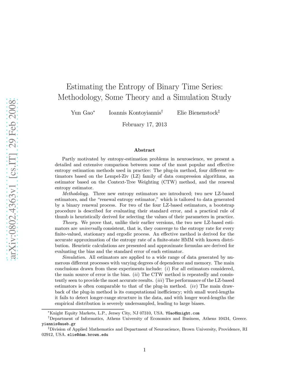 Partly motivated by entropy-estimation problems in neuroscience, we present a detailed and extensive comparison between some of the most popular and effective entropy estimation methods used in practice: The plug-in method, four different estimators based on the Lempel-Ziv (LZ) family of data compression algorithms, an estimator based on the Context-Tree Weighting (CTW) method, and the renewal entropy estimator. **Methodology. Three new entropy estimators are introduced. For two of the four LZ-based estimators, a bootstrap procedure is described for evaluating their standard error, and a practical rule of thumb is heuristically derived for selecting the values of their parameters. ** Theory. We prove that, unlike their earlier versions, the two new LZ-based estimators are consistent for every finite-valued, stationary and ergodic process. An effective method is derived for the accurate approximation of the entropy rate of a finite-state HMM with known distribution. Heuristic calculations are presented and approximate formulas are derived for evaluating the bias and the standard error of each estimator. ** Simulation. All estimators are applied to a wide range of data generated by numerous different processes with varying degrees of dependence and memory. Some conclusions drawn from these experiments include: (i) For all estimators considered, the main source of error is the bias. (ii) The CTW method is repeatedly and consistently seen to provide the most accurate results. (iii) The performance of the LZ-based estimators is often comparable to that of the plug-in method. (iv) The main drawback of the plug-in method is its computational inefficiency.