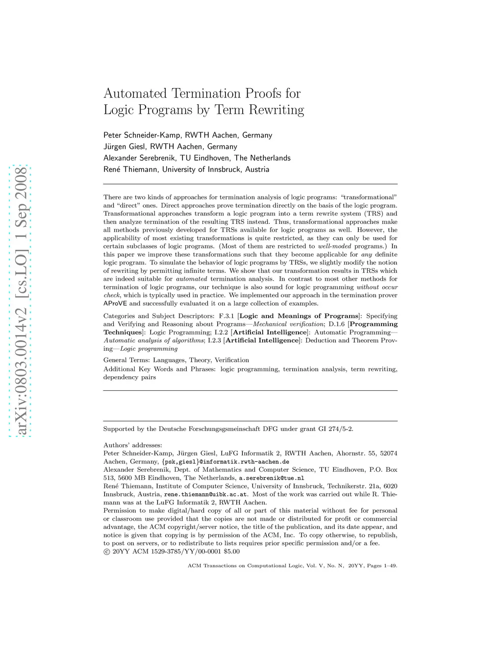 Automated Termination Proofs for Logic Programs by Term Rewriting