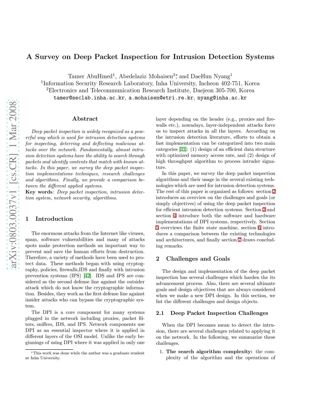A Survey on Deep Packet Inspection for Intrusion Detection Systems