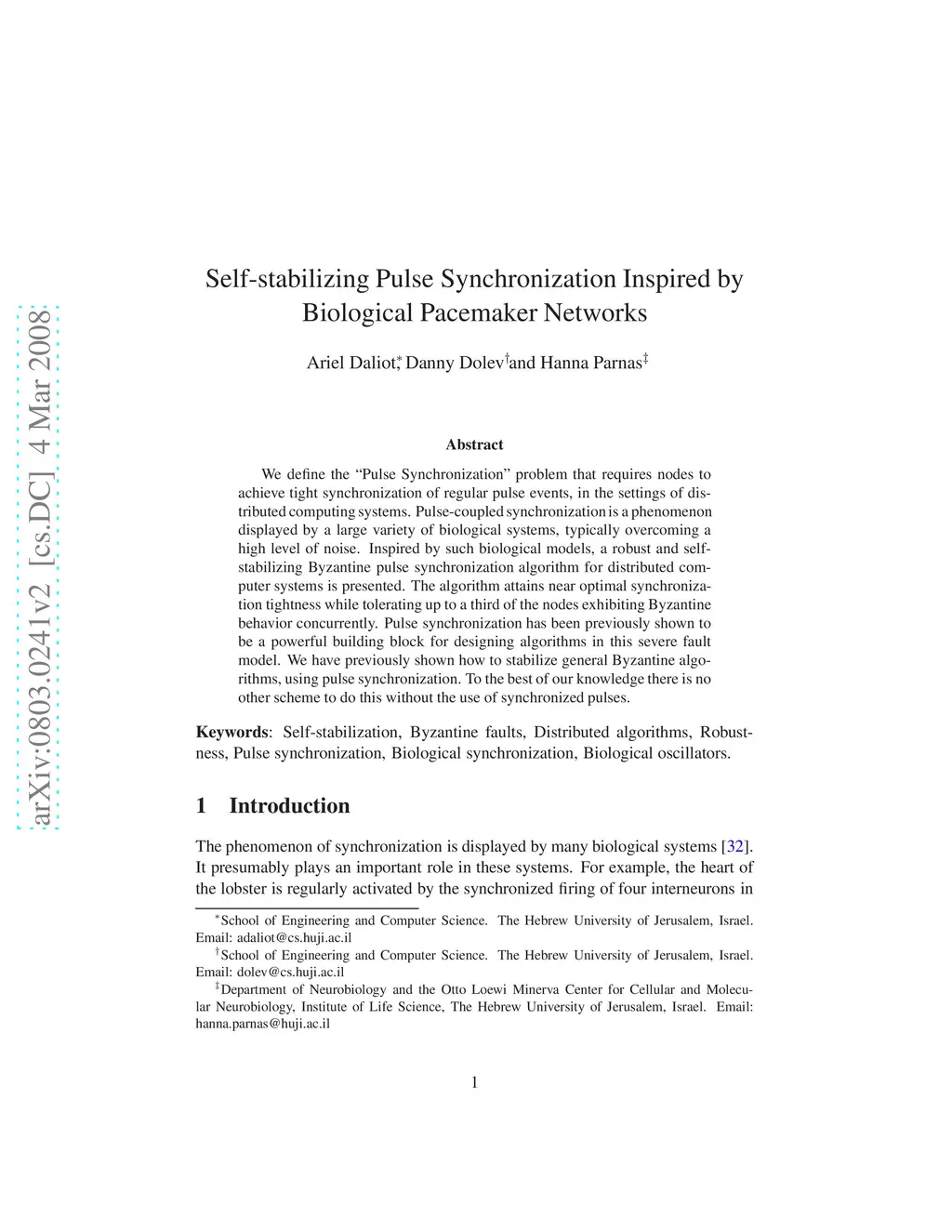 Self-Stabilizing Pulse Synchronization Inspired by Biological Pacemaker