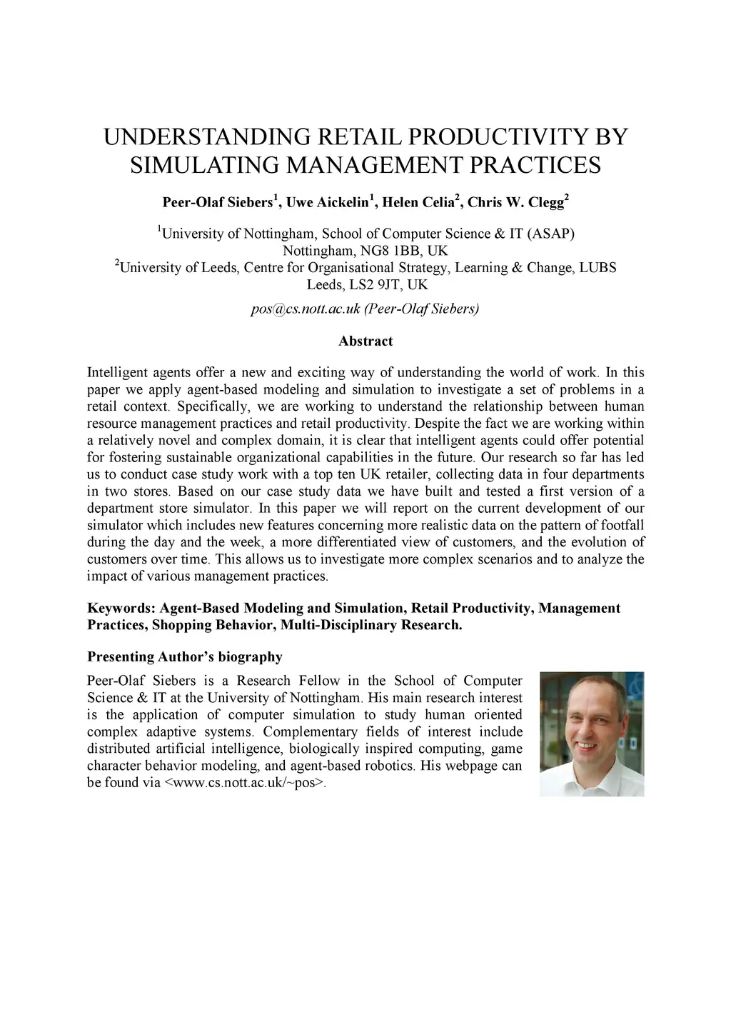Intelligent agents offer a new and exciting way of understanding the world of work. In this paper we apply agent-based modeling and simulation to investigate a set of problems in a retail context. Specifically, we are working to understand the relationship between human resource management practices and retail productivity. Despite the fact we are working within a relatively novel and complex domain, it is clear that intelligent agents could offer potential for fostering sustainable organizational capabilities in the future. Our research so far has led us to conduct case study work with a top ten UK retailer, collecting data in four departments in two stores. Based on our case study data we have built and tested a first version of a department store simulator. In this paper we will report on the current development of our simulator which includes new features concerning more realistic data on the pattern of footfall during the day and the week, a more differentiated view of customers, and the evolution of customers over time. This allows us to investigate more complex scenarios and to analyze the impact of various management practices.