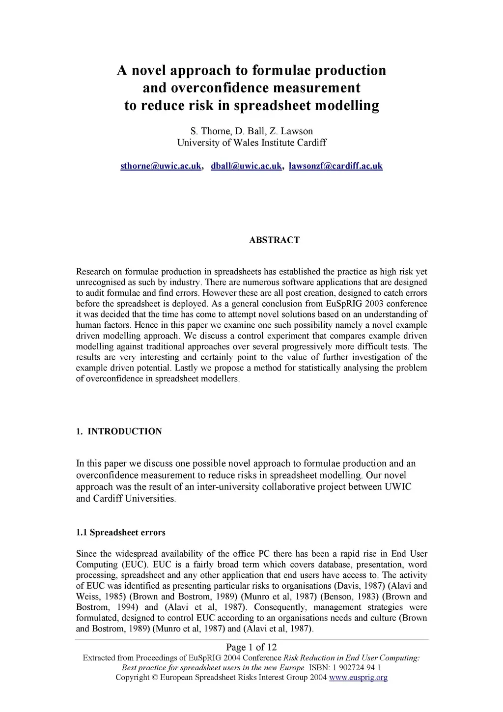 Research on formulae production in spreadsheets has established the practice as high risk yet unrecognised as such by industry. There are numerous software applications that are designed to audit formulae and find errors. However these are all post creation, designed to catch errors before the spreadsheet is deployed. As a general conclusion from EuSpRIG 2003 conference it was decided that the time has come to attempt novel solutions based on an understanding of human factors. Hence in this paper we examine one such possibility namely a novel example driven modelling approach. We discuss a control experiment that compares example driven modelling against traditional approaches over several progressively more difficult tests. The results are very interesting and certainly point to the value of further investigation of the example driven potential. Lastly we propose a method for statistically analysing the problem of overconfidence in spreadsheet modellers.
