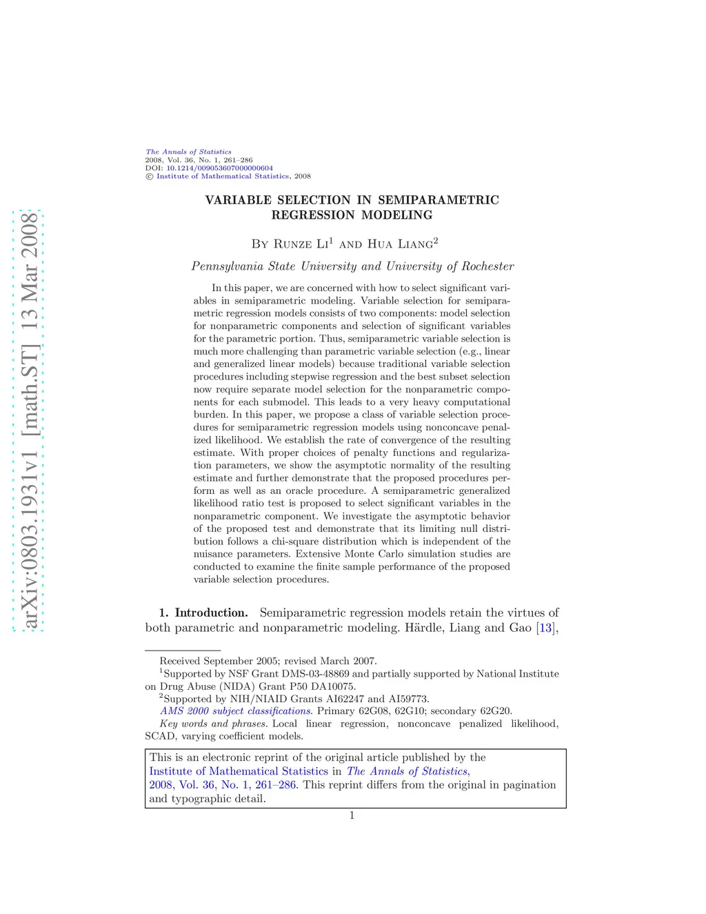 Variable selection in semiparametric regression modeling