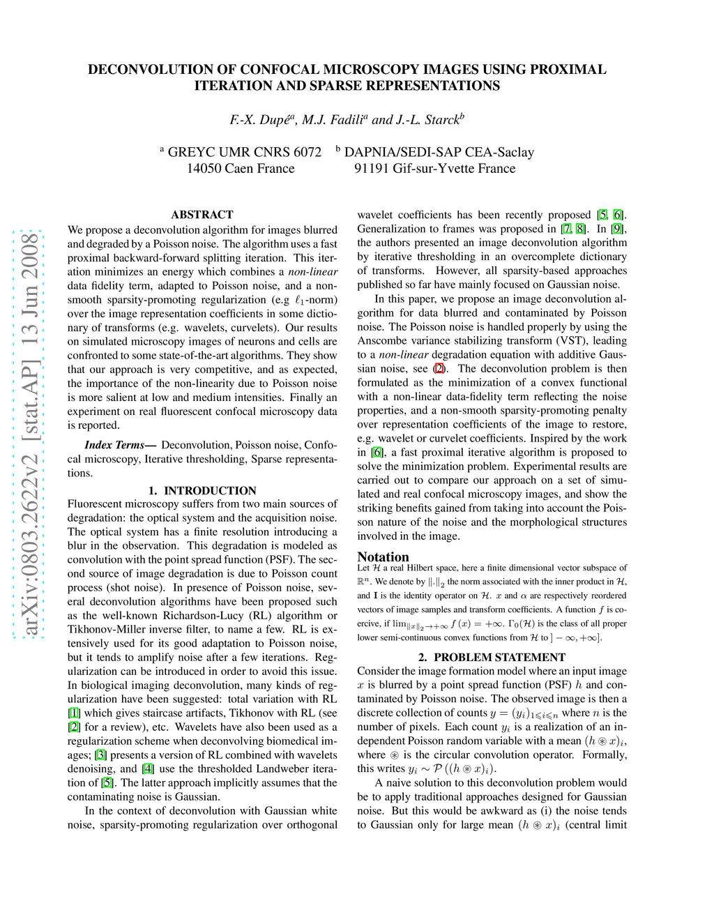 Deconvolution of confocal microscopy images using proximal iteration and