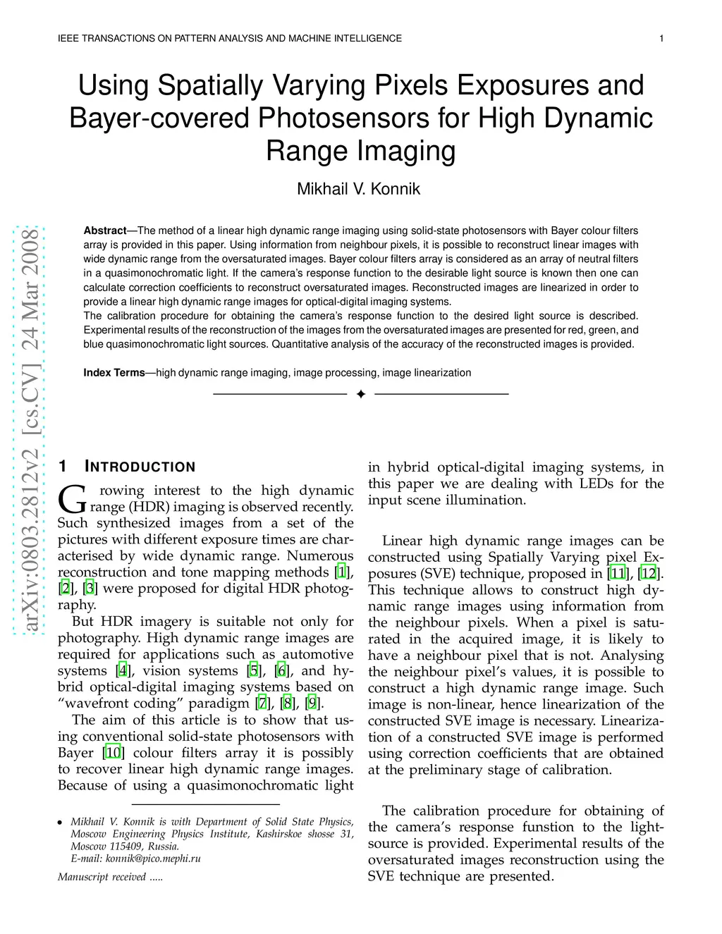 Using Spatially Varying Pixels Exposures and Bayer-covered Photosensors