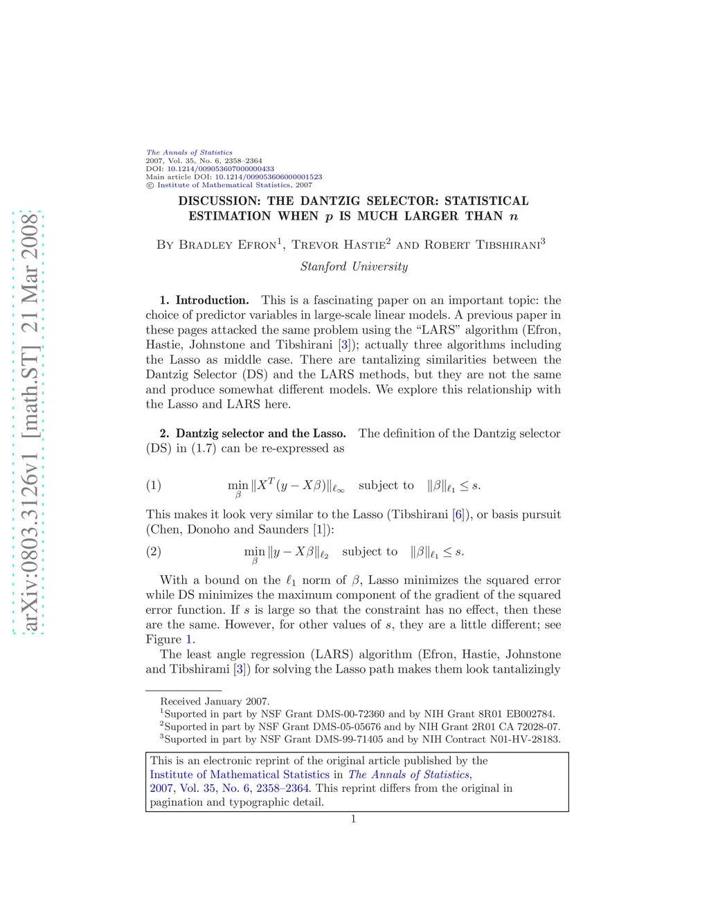 Discussion of ``The Dantzig selector: Statistical estimation when is much larger than '' [math/0506081]