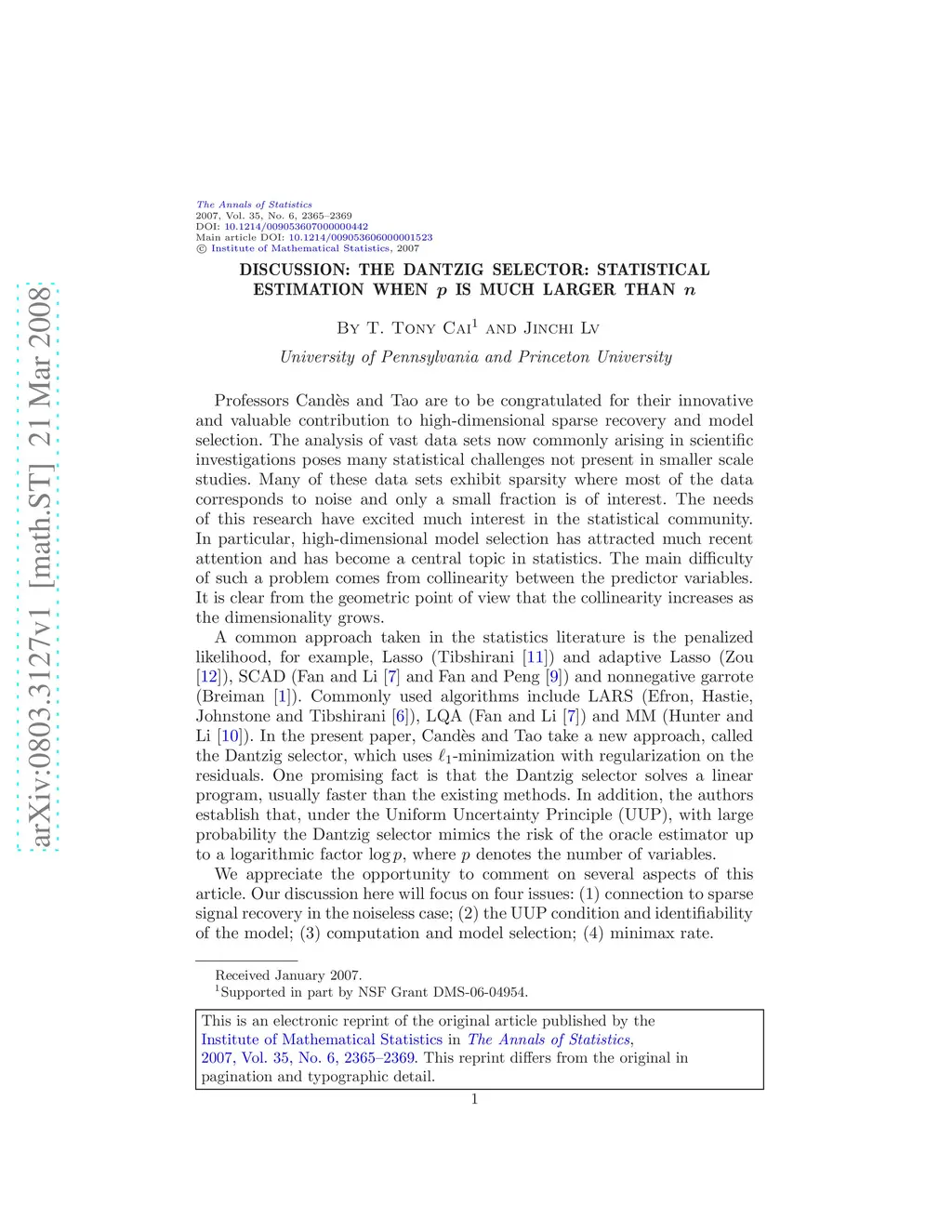 Discussion of ``The Dantzig selector: Statistical estimation when is much larger than '' [math/0506081]