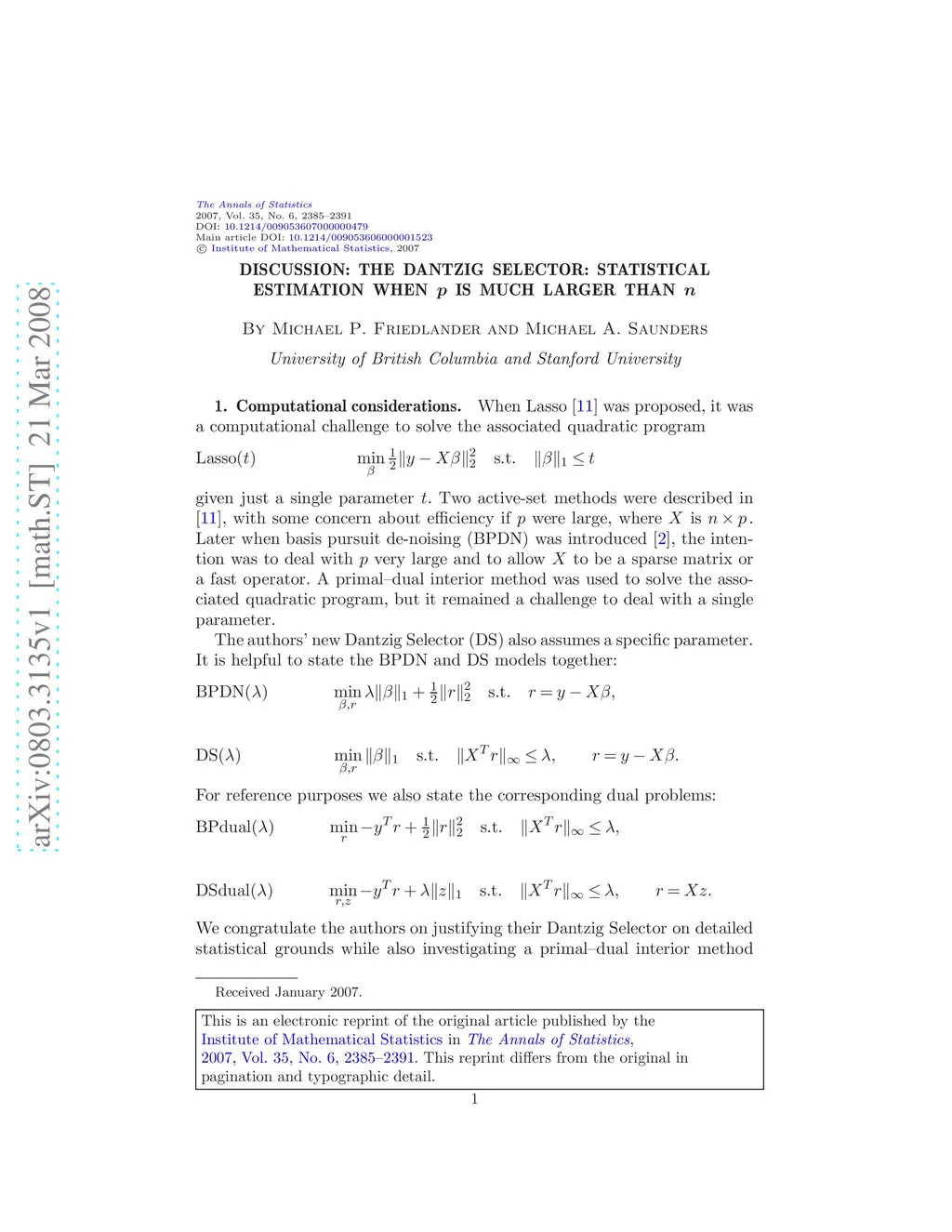Discussion of ``The Dantzig selector: Statistical estimation when is much larger than '' [math/0506081]