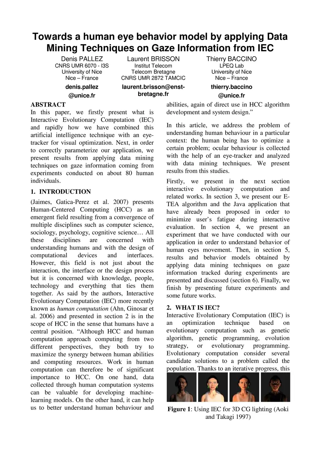 In this paper, we firstly present what is Interactive Evolutionary Computation (IEC) and rapidly how we have combined this artificial intelligence technique with an eye-tracker for visual optimization. Next, in order to correctly parameterize our application, we present results from applying data mining techniques on gaze information coming from experiments conducted on about 80 human individuals.