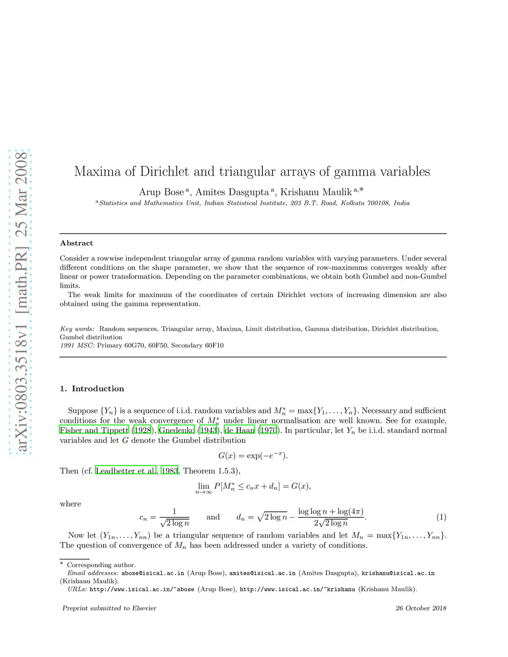 Maxima of Dirichlet and triangular arrays of gamma variables