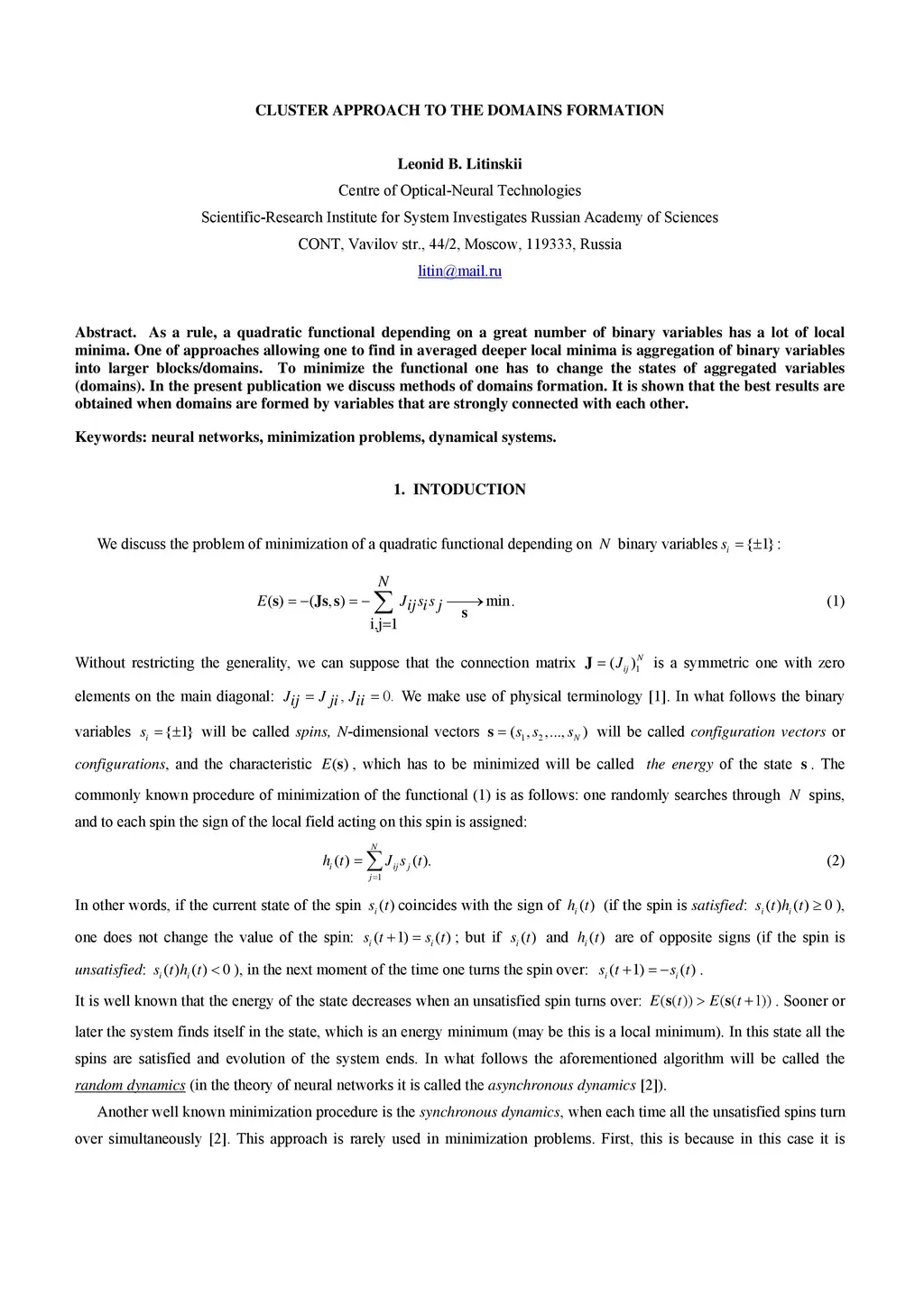 As a rule, a quadratic functional depending on a great number of binary variables has a lot of local minima. One of approaches allowing one to find in averaged deeper local minima is aggregation of binary variables into larger blocks/domains. To minimize the functional one has to change the states of aggregated variables (domains). In the present publication we discuss methods of domains formation. It is shown that the best results are obtained when domains are formed by variables that are strongly connected with each other.