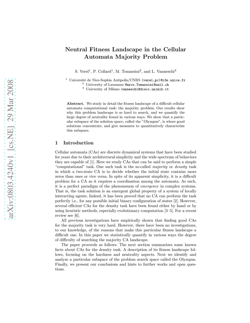 We study in detail the fitness landscape of a difficult cellular automata computational task: the majority problem. Our results show why this problem landscape is so hard to search, and we quantify the large degree of neutrality found in various ways. We show that a particular subspace of the solution space, called the "Olympus", is where good solutions concentrate, and give measures to quantitatively characterize this subspace.