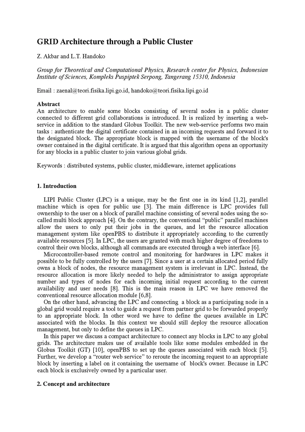 An architecture to enable some blocks consisting of several nodes in a public cluster connected to different grid collaborations is introduced. It is realized by inserting a web-service in addition to the standard Globus Toolkit. The new web-service performs two main tasks : authenticate the digital certificate contained in an incoming requests and forward it to the designated block. The appropriate block is mapped with the username of the block's owner contained in the digital certificate. It is argued that this algorithm opens an opportunity for any blocks in a public cluster to join various global grids.