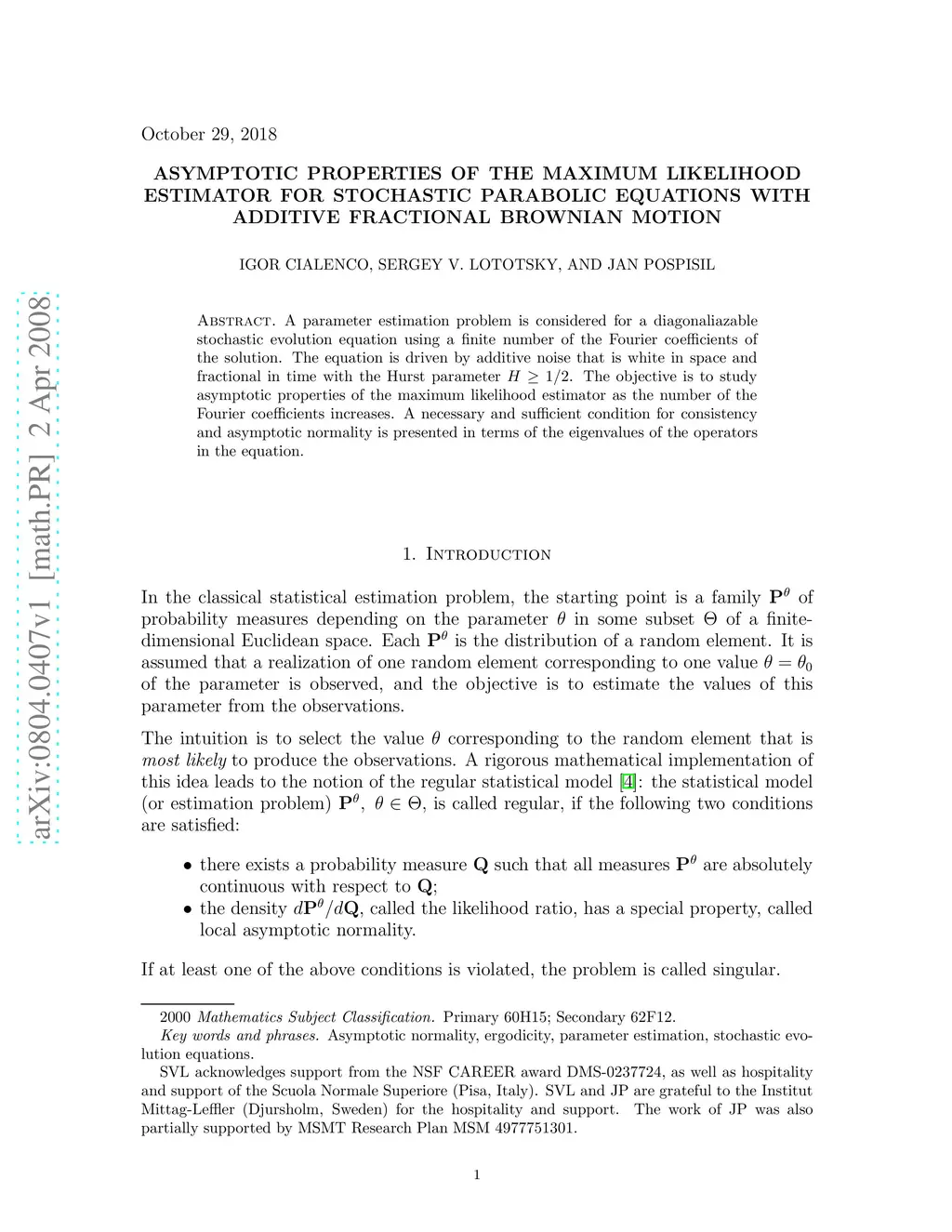 Asymptotic Properties of the Maximum Likelihood Estimator for Stochastic