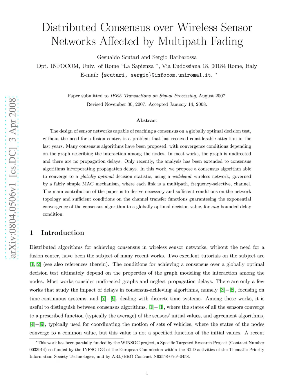 The design of sensor networks capable of reaching a consensus on a globally optimal decision test, without the need for a fusion center, is a problem that has received considerable attention in the last years. Many consensus algorithms have been proposed, with convergence conditions depending on the graph describing the interaction among the nodes. In most works, the graph is undirected and there are no propagation delays. Only recently, the analysis has been extended to consensus algorithms incorporating propagation delays. In this work, we propose a consensus algorithm able to converge to a globally optimal decision statistic, using a wideband wireless network, governed by a fairly simple MAC mechanism, where each link is a multipath, frequency-selective, channel. The main contribution of the paper is to derive necessary and sufficient conditions on the network topology and sufficient conditions on the channel transfer functions guaranteeing the exponential convergence of the consensus algorithm to a globally optimal decision value, for any bounded delay condition.