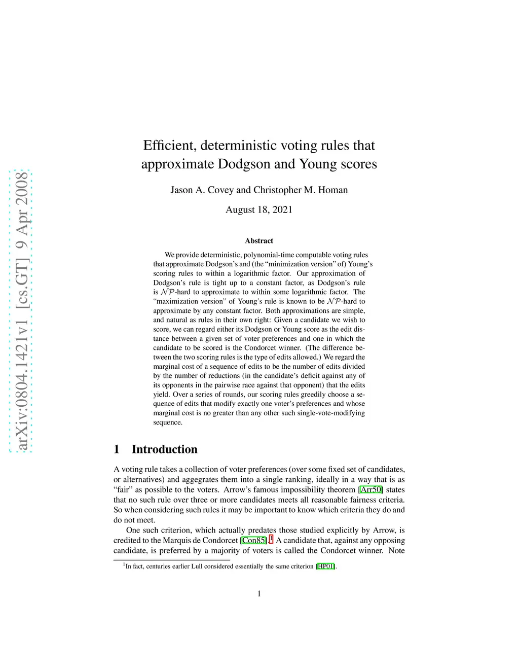 We provide deterministic, polynomial-time computable voting rules that approximate Dodgson's and (the ``minimization version'' of) Young's scoring rules to within a logarithmic factor. Our approximation of Dodgson's rule is tight up to a constant factor, as Dodgson's rule is -hard to approximate to within some logarithmic factor. The ``maximization version'' of Young's rule is known to be -hard to approximate by any constant factor. Both approximations are simple, and natural as rules in their own right: Given a candidate we wish to score, we can regard either its Dodgson or Young score as the edit distance between a given set of voter preferences and one in which the candidate to be scored is the Condorcet winner. (The difference between the two scoring rules is the type of edits allowed.) We regard the marginal cost of a sequence of edits to be the number of edits divided by the number of reductions (in the candidate's deficit against any of its opponents in the pairwise race against that opponent) that the edits yield. Over a series of rounds, our scoring rules greedily choose a sequence of edits that modify exactly one voter's preferences and whose marginal cost is no greater than any other such single-vote-modifying sequence.