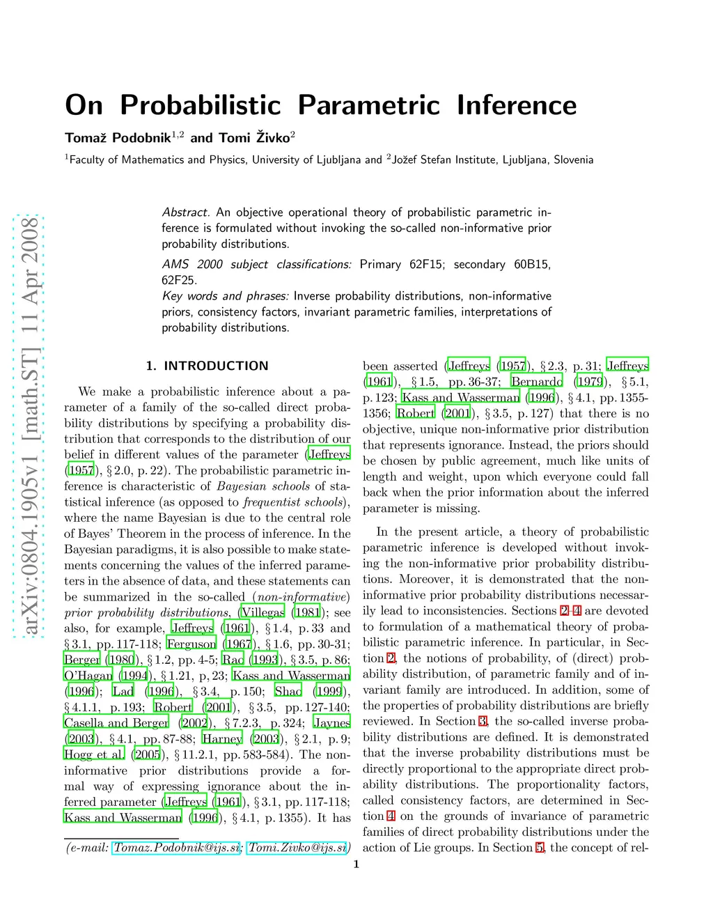 On Probabilistic Parametric Inference