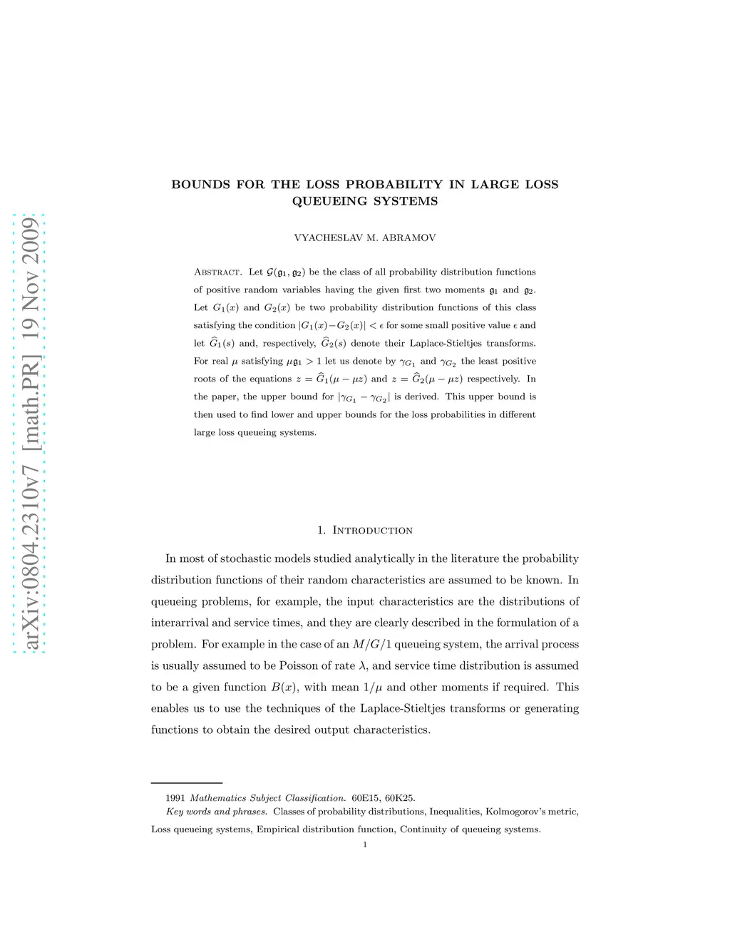Let be the class of all probability distribution functions of positive random variables having the given first two moments and . Let and be two probability distribution functions of this class satisfying the condition for some small positive value and let and, respectively, denote their Laplace-Stieltjes transforms. For real satisfying let us denote by and the least positive roots of the equations and respectively. In the paper, the upper bound for is derived. This upper bound is then used to find lower and upper bounds for the loss probabilities in different large loss queueing systems.
