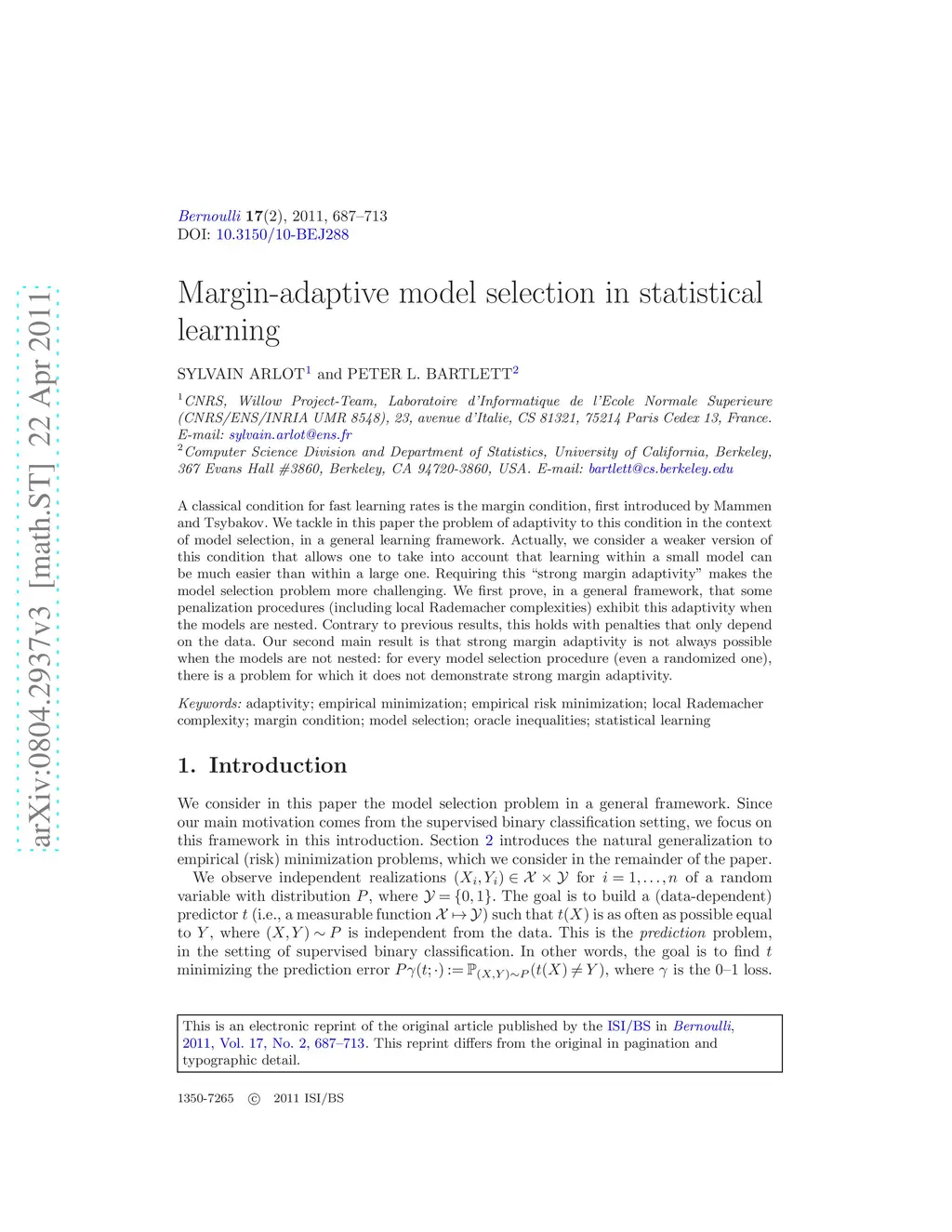 Margin-adaptive model selection in statistical learning