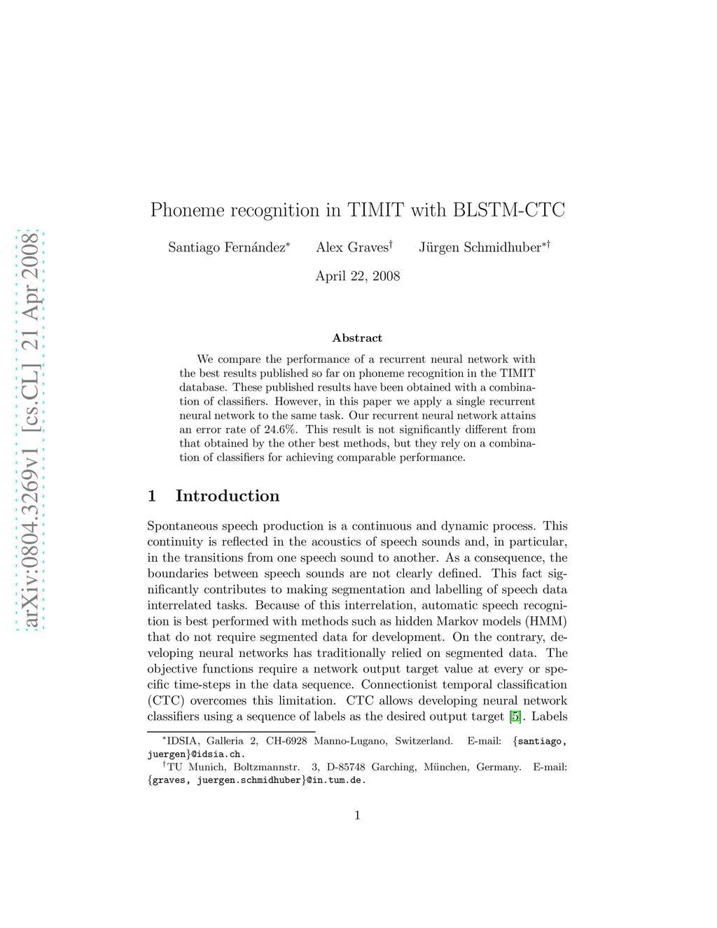 Phoneme recognition in TIMIT with BLSTM-CTC