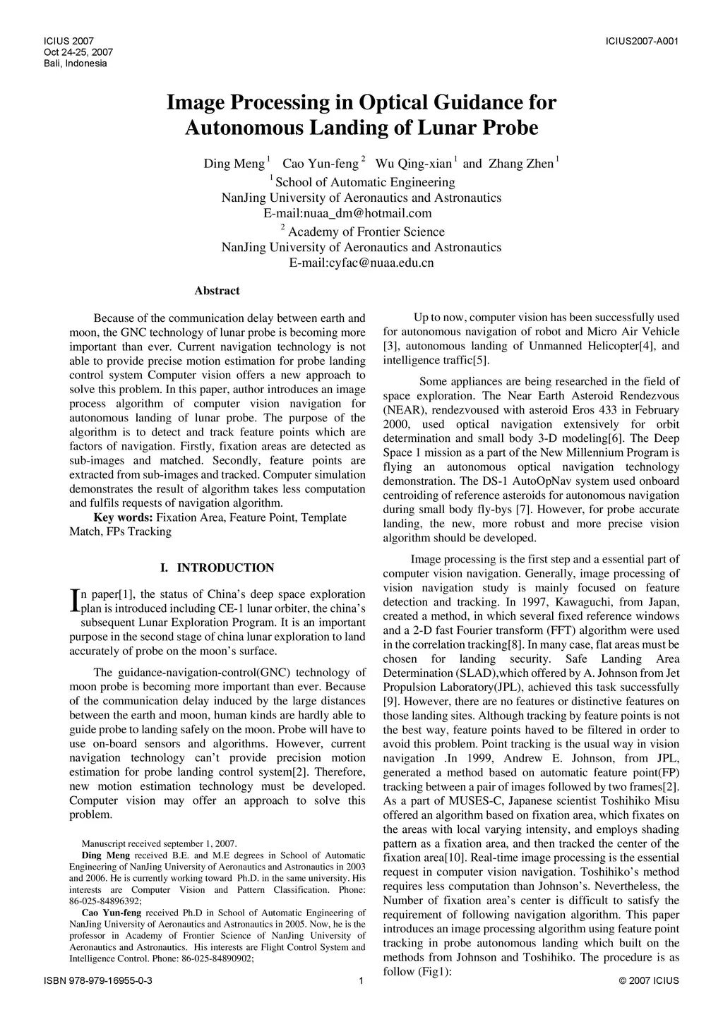 Image Processing in Optical Guidance for Autonomous Landing of Lunar