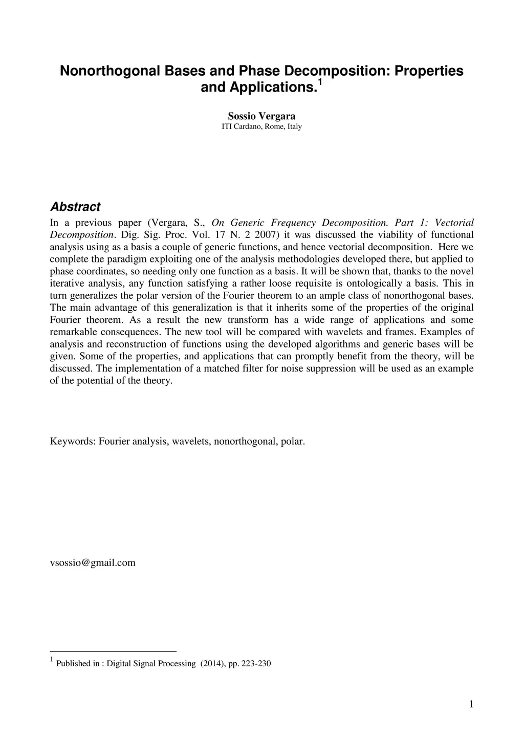 In a previous paper [1] it was discussed the viability of functional analysis using as a basis a couple of generic functions, and hence vectorial decomposition. Here we complete the paradigm exploiting one of the analysis methodologies developed there, but applied to phase coordinates, so needing only one function as a basis. It will be shown that, thanks to the novel iterative analysis, any function satisfying a rather loose requisite is ontologically a basis. This in turn generalizes the polar version of the Fourier theorem to an ample class of nonorthogonal bases. The main advantage of this generalization is that it inherits some of the properties of the original Fourier theorem. As a result the new transform has a wide range of applications and some remarkable consequences. The new tool will be compared with wavelets and frames. Examples of analysis and reconstruction of functions using the developed algorithms and generic bases will be given. Some of the properties, and applications that can promptly benefit from the theory, will be discussed. The implementation of a matched filter for noise suppression will be used as an example of the potential of the theory.