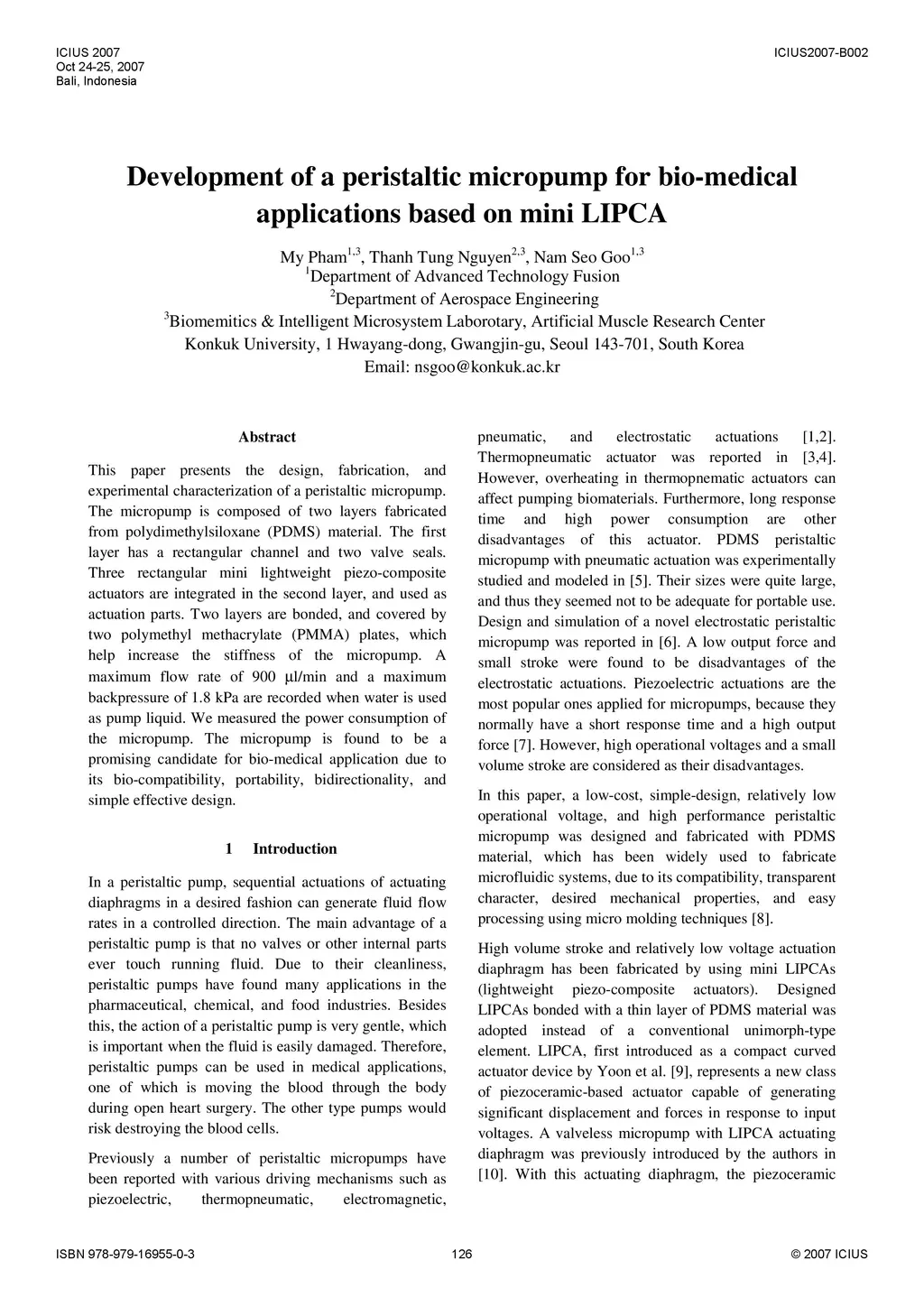 Development of a peristaltic micropump for bio-medical applications