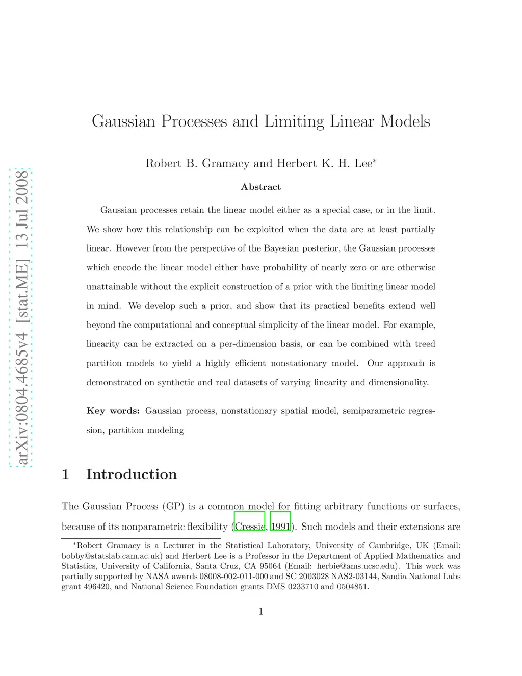 Gaussian processes retain the linear model either as a special case, or in the limit. We show how this relationship can be exploited when the data are at least partially linear. However from the perspective of the Bayesian posterior, the Gaussian processes which encode the linear model either have probability of nearly zero or are otherwise unattainable without the explicit construction of a prior with the limiting linear model in mind. We develop such a prior, and show that its practical benefits extend well beyond the computational and conceptual simplicity of the linear model. For example, linearity can be extracted on a per-dimension basis, or can be combined with treed partition models to yield a highly efficient nonstationary model. Our approach is demonstrated on synthetic and real datasets of varying linearity and dimensionality.