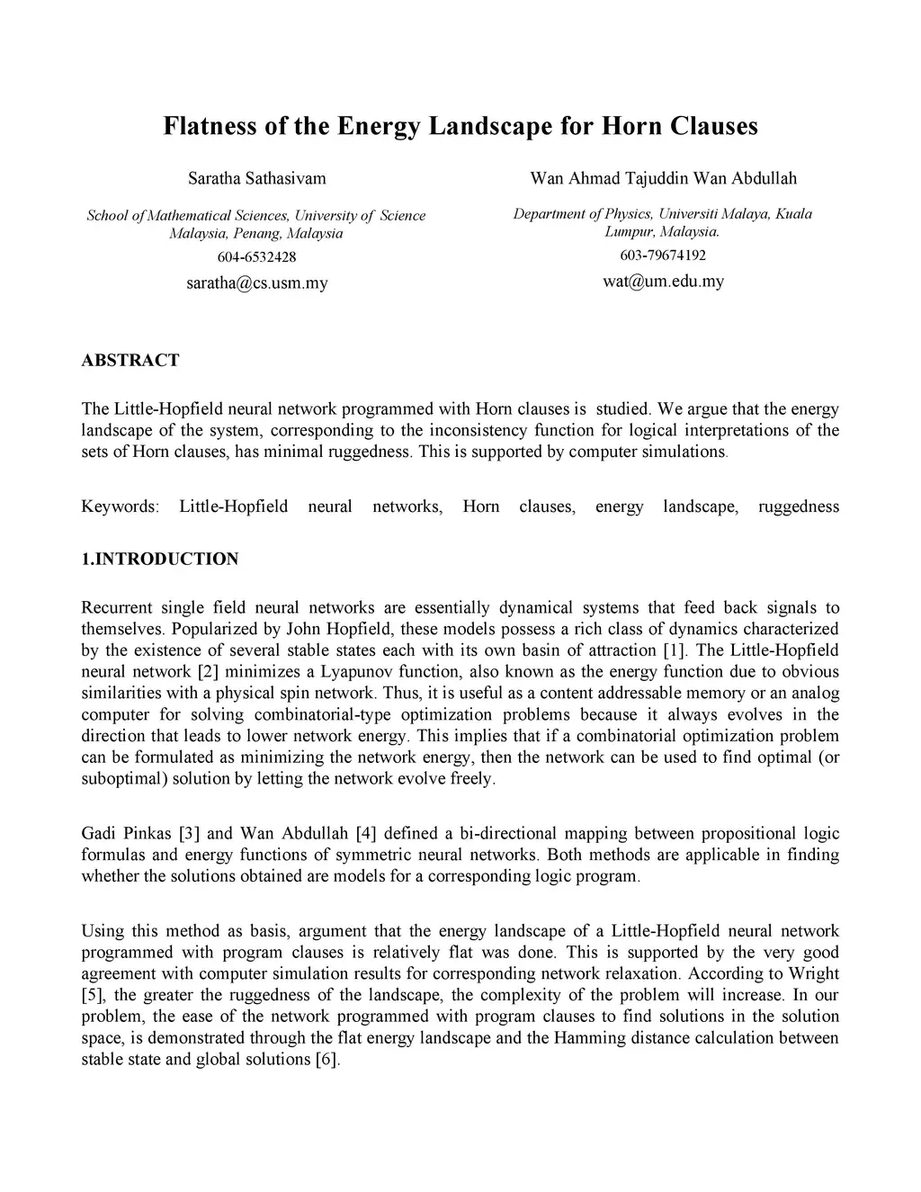 The Little-Hopfield neural network programmed with Horn clauses is studied. We argue that the energy landscape of the system, corresponding to the inconsistency function for logical interpretations of the sets of Horn clauses, has minimal ruggedness. This is supported by computer simulations.
