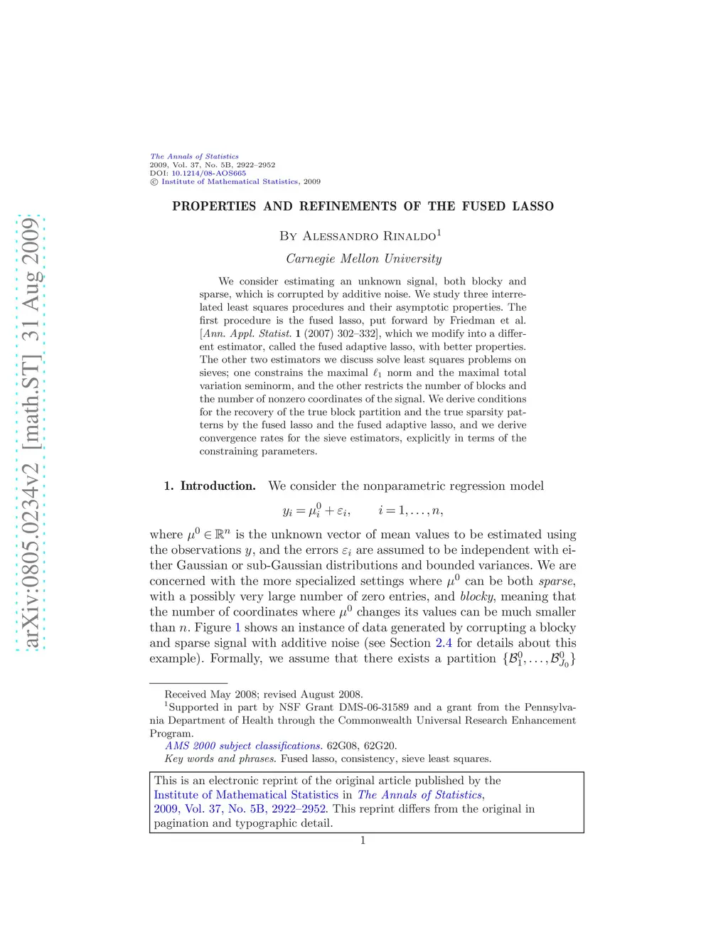 We consider estimating an unknown signal, both blocky and sparse, which is corrupted by additive noise. We study three interrelated least squares procedures and their asymptotic properties. The first procedure is the fused lasso, put forward by Friedman et al. [Ann. Appl. Statist. 1 (2007) 302--332], which we modify into a different estimator, called the fused adaptive lasso, with better properties. The other two estimators we discuss solve least squares problems on sieves; one constrains the maximal norm and the maximal total variation seminorm, and the other restricts the number of blocks and the number of nonzero coordinates of the signal. We derive conditions for the recovery of the true block partition and the true sparsity patterns by the fused lasso and the fused adaptive lasso, and we derive convergence rates for the sieve estimators, explicitly in terms of the constraining parameters.