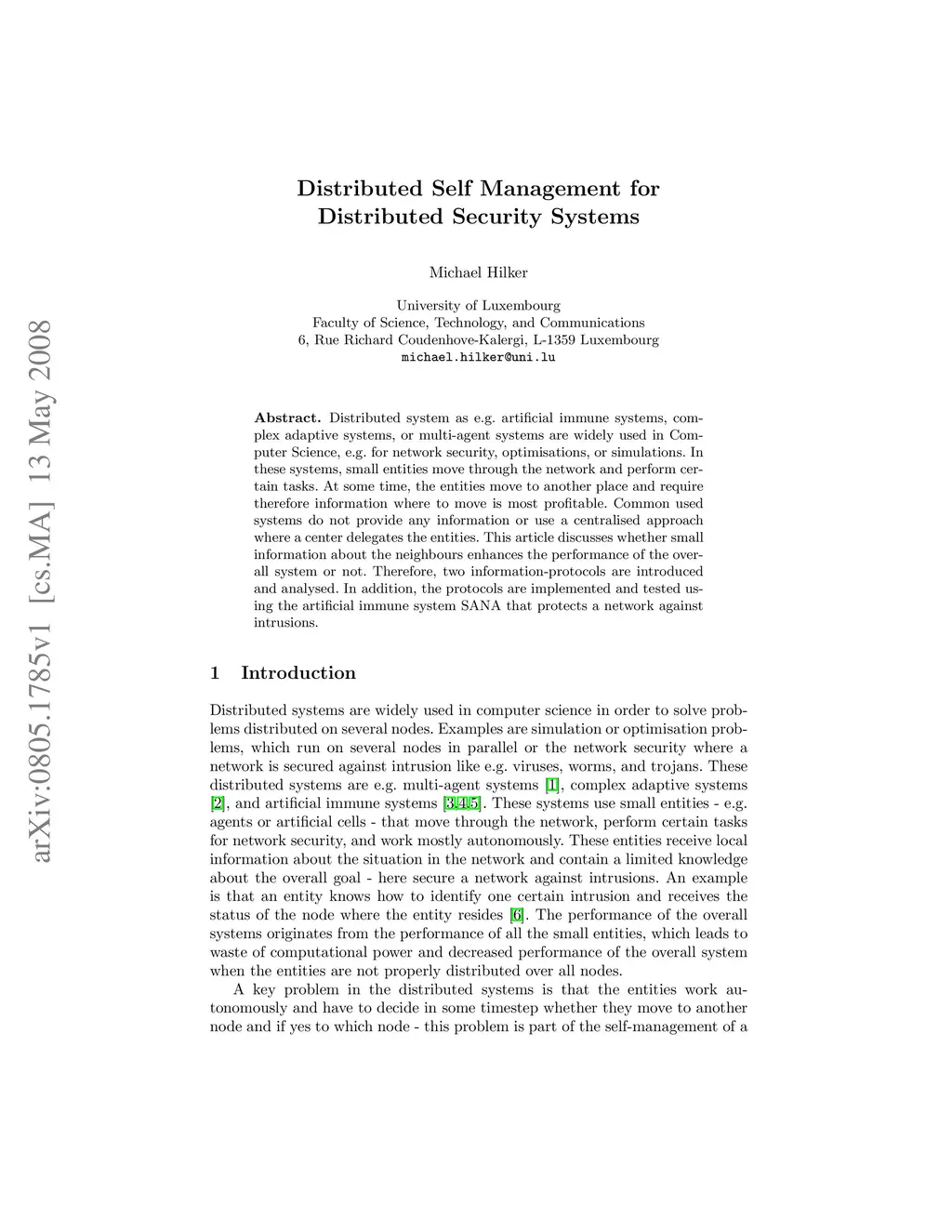 Distributed system as e.g. artificial immune systems, complex adaptive systems, or multi-agent systems are widely used in Computer Science, e.g. for network security, optimisations, or simulations. In these systems, small entities move through the network and perform certain tasks. At some time, the entities move to another place and require therefore information where to move is most profitable. Common used systems do not provide any information or use a centralised approach where a center delegates the entities. This article discusses whether small information about the neighbours enhances the performance of the overall system or not. Therefore, two information-protocols are introduced and analysed. In addition, the protocols are implemented and tested using the artificial immune system SANA that protects a network against intrusions.