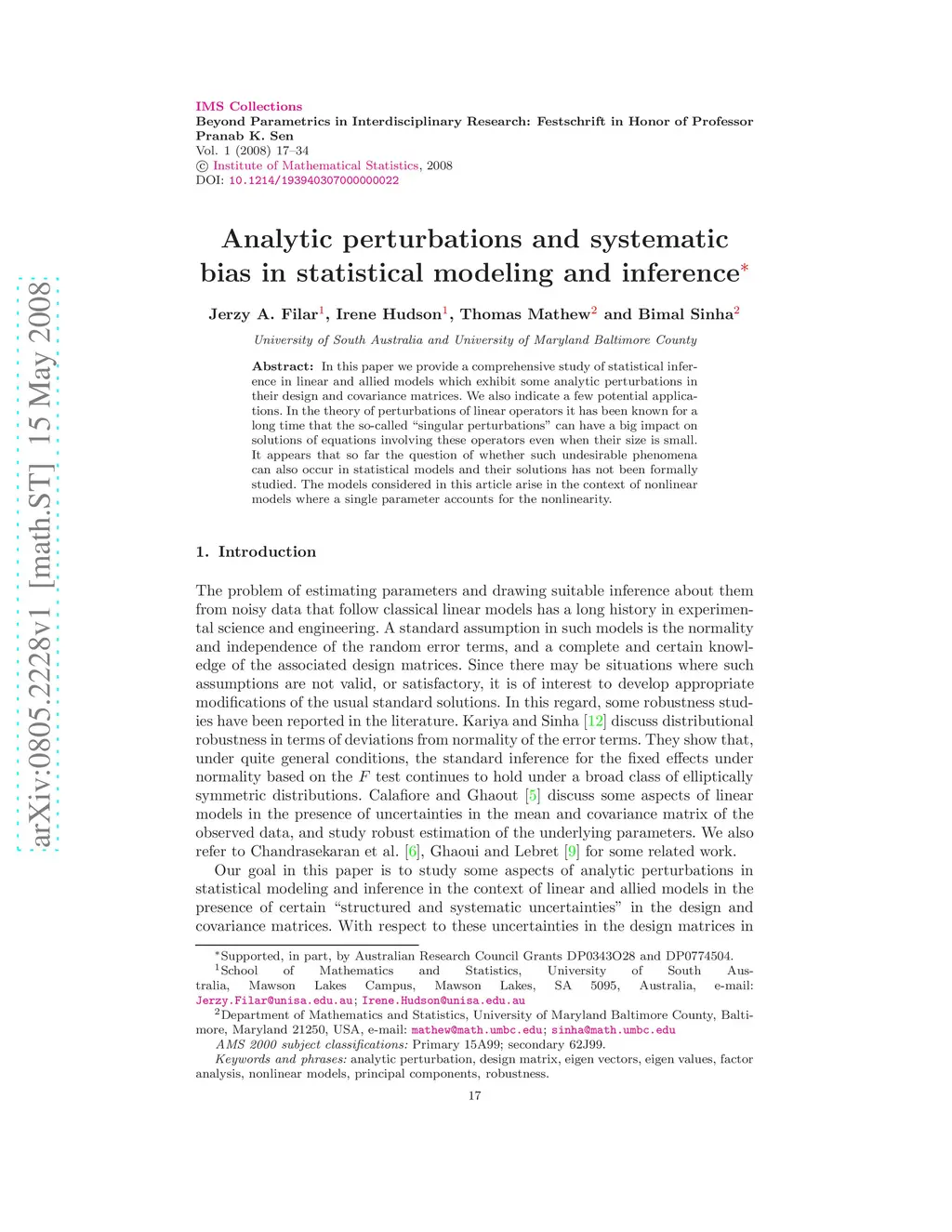 In this paper we provide a comprehensive study of statistical inference in linear and allied models which exhibit some analytic perturbations in their design and covariance matrices. We also indicate a few potential applications. In the theory of perturbations of linear operators it has been known for a long time that the so-called ``singular perturbations'' can have a big impact on solutions of equations involving these operators even when their size is small. It appears that so far the question of whether such undesirable phenomena can also occur in statistical models and their solutions has not been formally studied. The models considered in this article arise in the context of nonlinear models where a single parameter accounts for the nonlinearity.