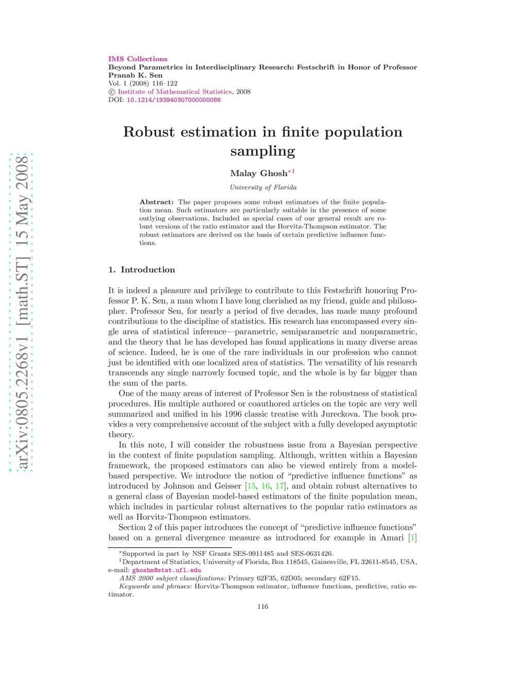 Robust estimation in finite population sampling