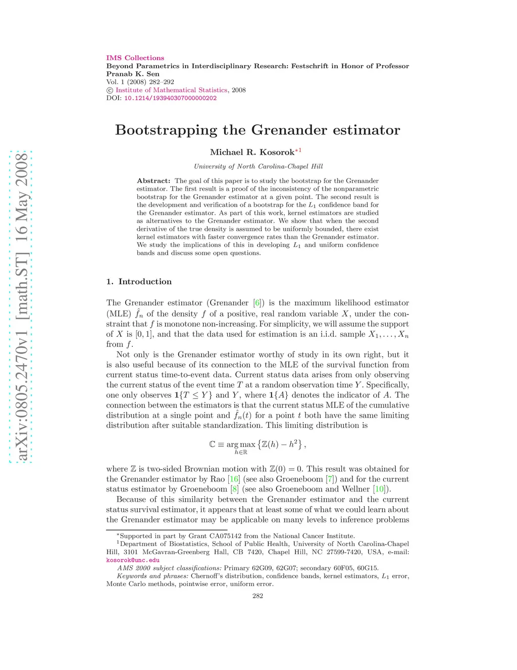 The goal of this paper is to study the bootstrap for the Grenander estimator. The first result is a proof of the inconsistency of the nonparametric bootstrap for the Grenander estimator at a given point. The second result is the development and verification of a bootstrap for the confidence band for the Grenander estimator. As part of this work, kernel estimators are studied as alternatives to the Grenander estimator. We show that when the second derivative of the true density is assumed to be uniformly bounded, there exist kernel estimators with faster convergence rates than the Grenander estimator. We study the implications of this in developing and uniform confidence bands and discuss some open questions.