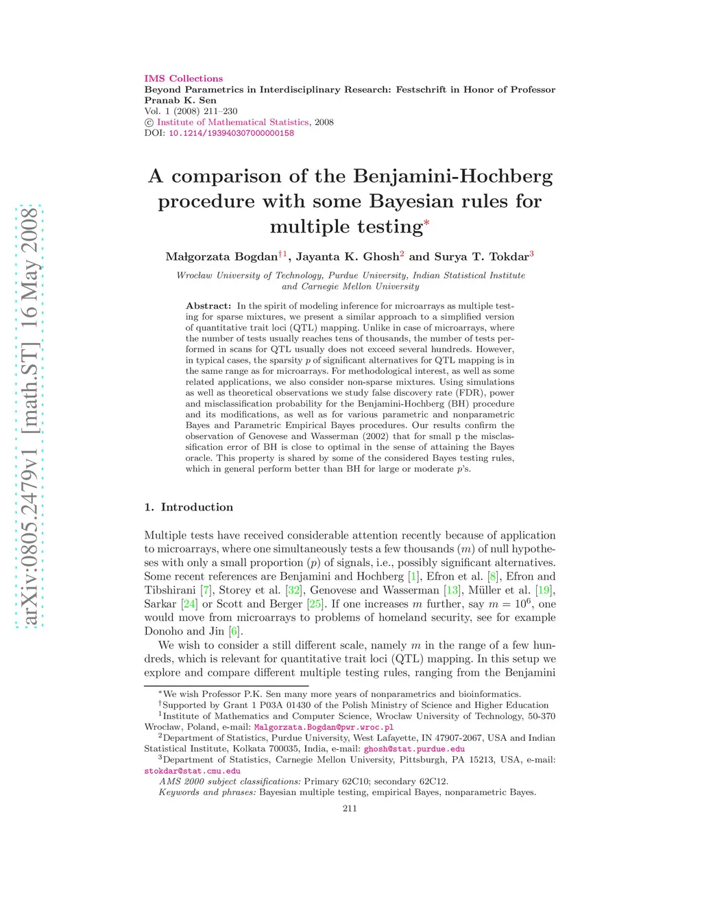 A comparison of the Benjamini-Hochberg procedure with some Bayesian