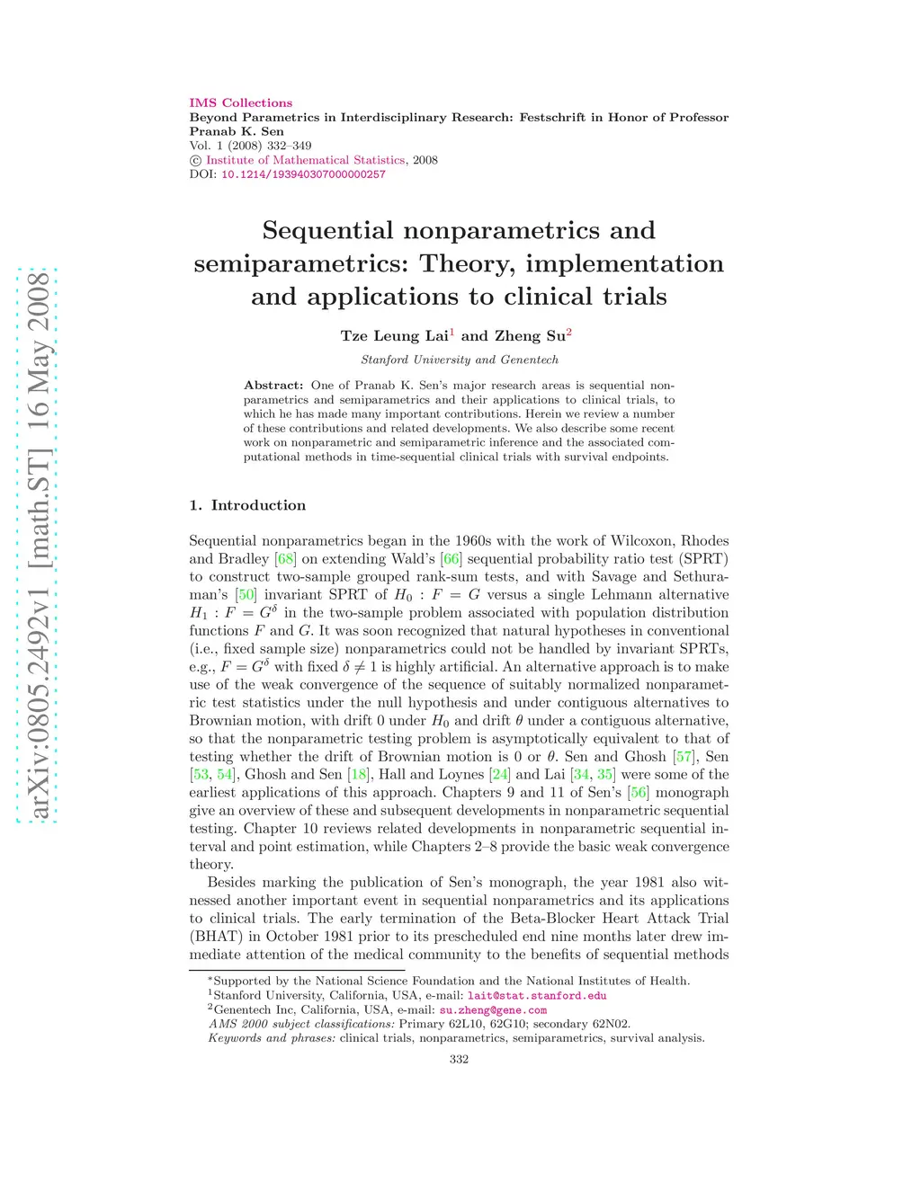 One of Pranab K. Sen's major research areas is sequential nonparametrics and semiparametrics and their applications to clinical trials, to which he has made many important contributions. Herein we review a number of these contributions and related developments. We also describe some recent work on nonparametric and semiparametric inference and the associated computational methods in time-sequential clinical trials with survival endpoints.