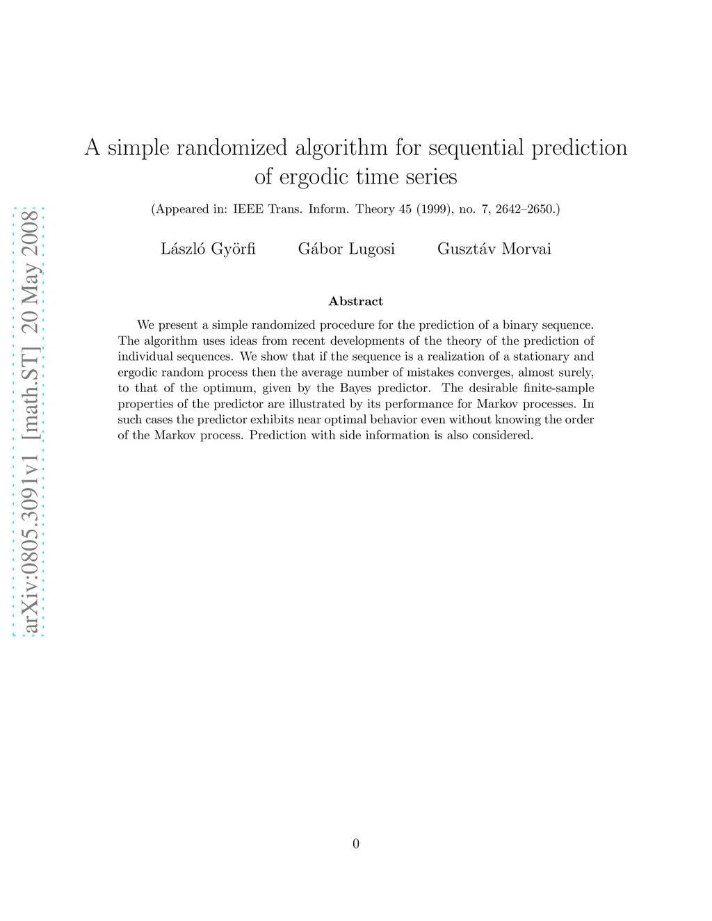 IEEE Transactions on Information Theory (IEEE Trans. Inf. Theory), 1999