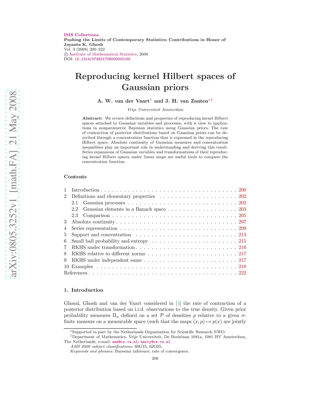 We review definitions and properties of reproducing kernel Hilbert spaces attached to Gaussian variables and processes, with a view to applications in nonparametric Bayesian statistics using Gaussian priors. The rate of contraction of posterior distributions based on Gaussian priors can be described through a concentration function that is expressed in the reproducing Hilbert space. Absolute continuity of Gaussian measures and concentration inequalities play an important role in understanding and deriving this result. Series expansions of Gaussian variables and transformations of their reproducing kernel Hilbert spaces under linear maps are useful tools to compute the concentration function.