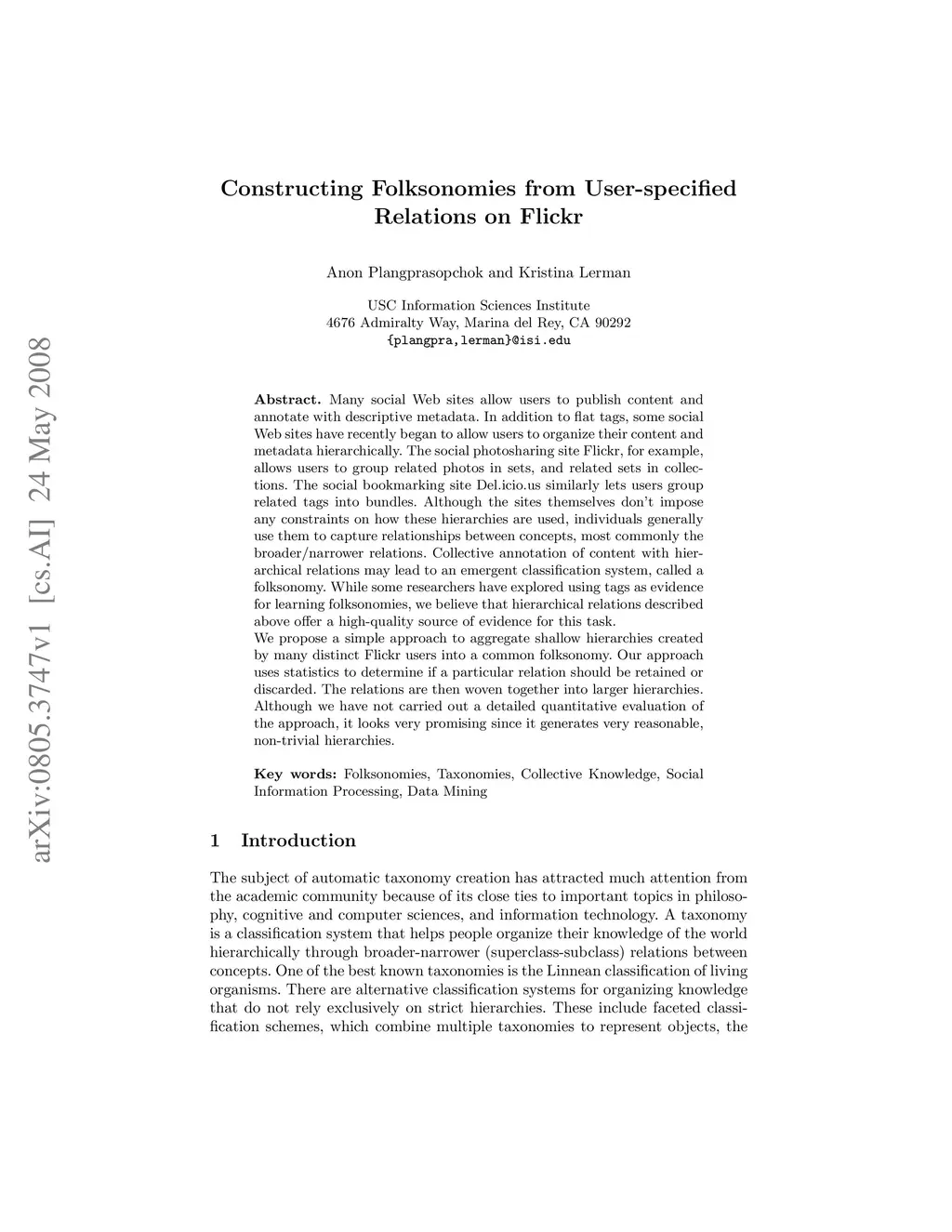 Constructing Folksonomies from User-specified Relations on Flickr