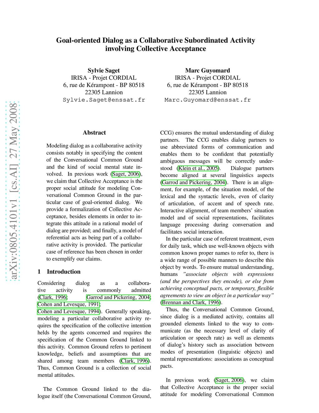Modeling dialog as a collaborative activity consists notably in specifying the content of the Conversational Common Ground and the kind of social mental state involved. In previous work (Saget, 2006), we claim that Collective Acceptance is the proper social attitude for modeling Conversational Common Ground in the particular case of goal-oriented dialog. In this paper, a formalization of Collective Acceptance is shown, besides elements in order to integrate this attitude in a rational model of dialog are provided; and finally, a model of referential acts as being part of a collaborative activity is presented. The particular case of reference has been chosen in order to exemplify our claims.