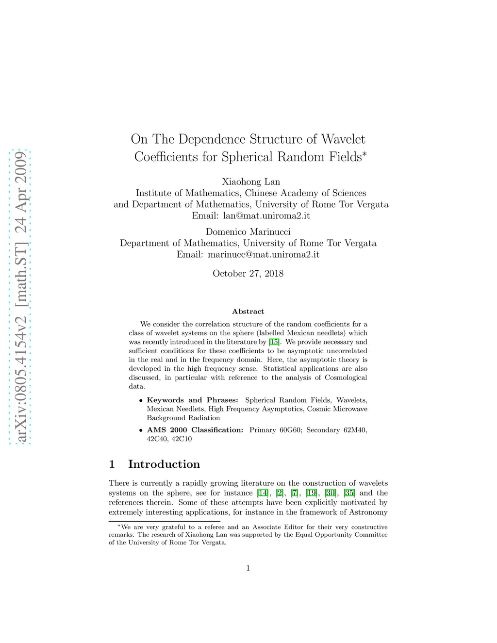We consider the correlation structure of the random coefficients for a wide class of wavelet systems on the sphere (Mexican needlets) which were recently introduced in the literature by Geller and Mayeli (2007). We provide necessary and sufficient conditions for these coefficients to be asymptotic uncorrelated in the real and in the frequency domain. Here, the asymptotic theory is developed in the high resolution sense. Statistical applications are also discussed, in particular with reference to the analysis of cosmological data.