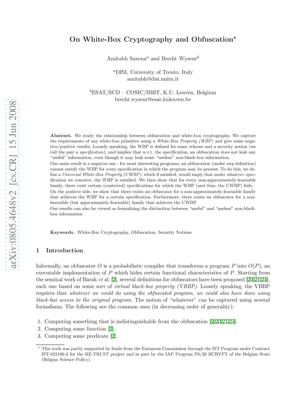 We study the relationship between obfuscation and white-box cryptography. We capture the requirements of any white-box primitive using a \emph{White-Box Property (WBP)} and give some negative/positive results. Loosely speaking, the WBP is defined for some scheme and a security notion (we call the pair a \emph{specification}), and implies that w.r.t. the specification, an obfuscation does not leak any ``useful'' information, even though it may leak some ``useless'' non-black-box information. Our main result is a negative one - for most interesting programs, an obfuscation (under \emph{any} definition) cannot satisfy the WBP for every specification in which the program may be present. To do this, we define a \emph{Universal White-Box Property (UWBP)}, which if satisfied, would imply that under \emph{whatever} specification we conceive, the WBP is satisfied. We then show that for every non-approximately-learnable family, there exist (contrived) specifications for which the WBP (and thus, the UWBP) fails. On the positive side, we show that there exists an obfuscator for a non-approximately-learnable family that achieves the WBP for a certain specification. Furthermore, there exists an obfuscator for a non-learnable (but approximately-learnable) family that achieves the UWBP. Our results can also be viewed as formalizing the distinction between ``useful'' and ``useless'' non-black-box information.