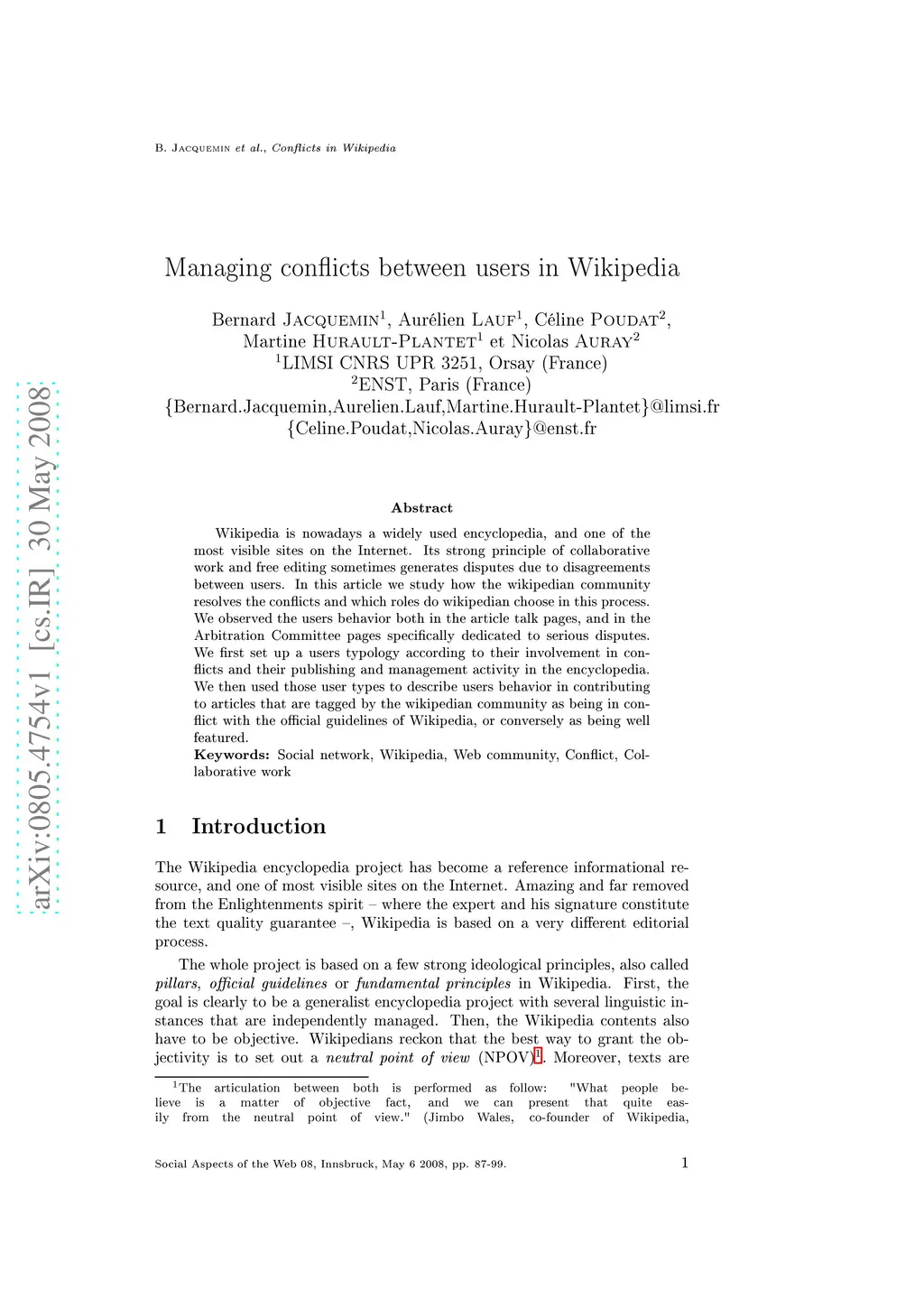 Managing conflicts between users in Wikipedia