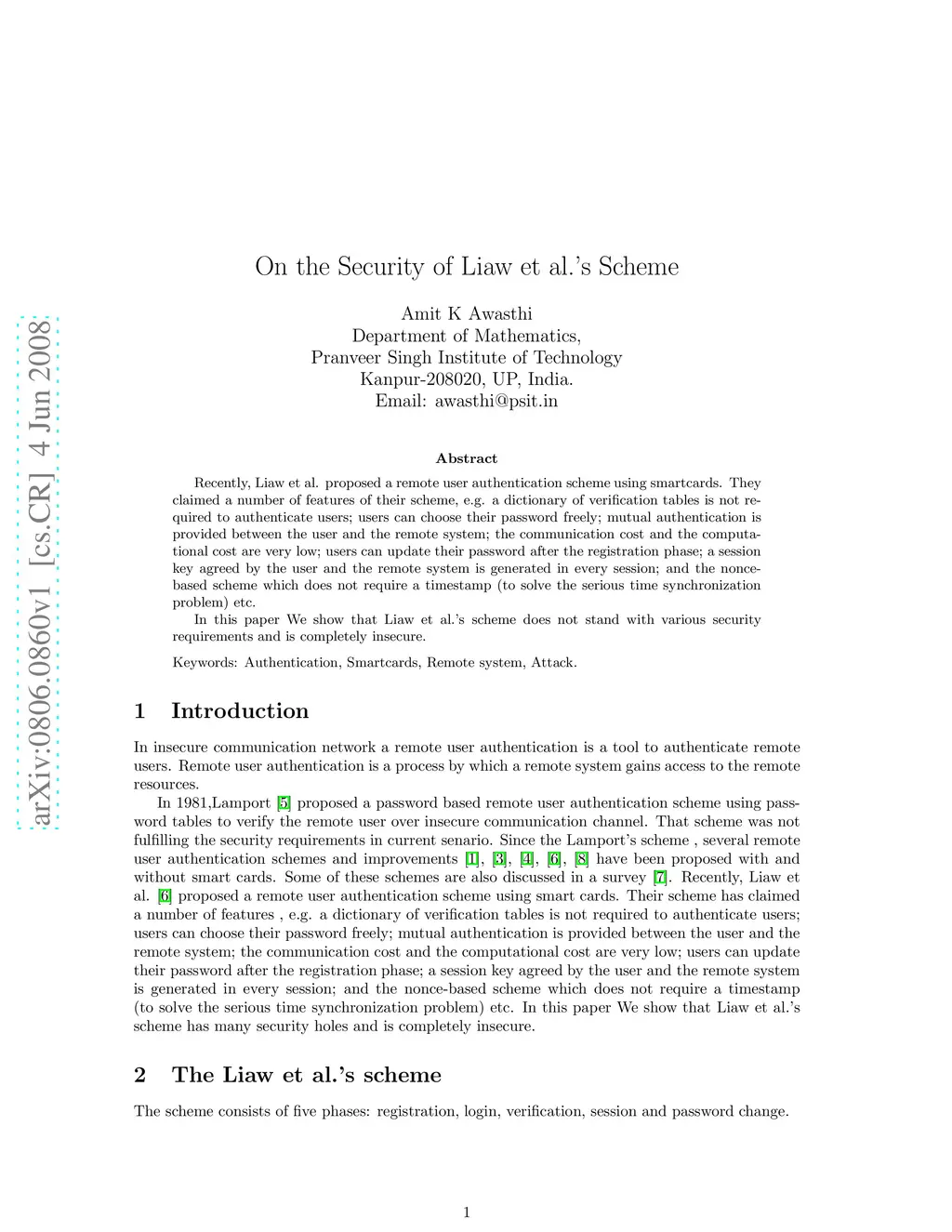 On the Security of Liaw et al.'s Scheme