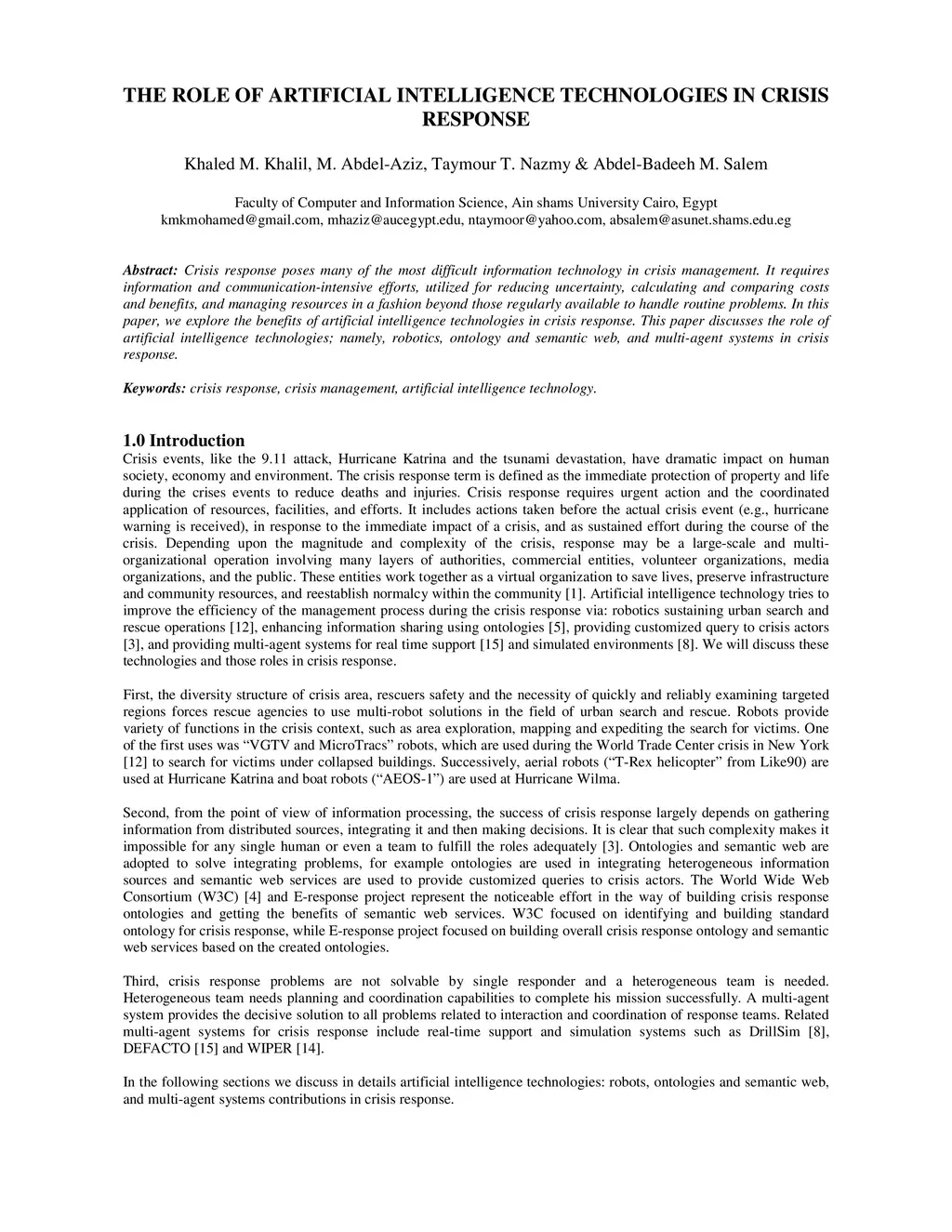 The Role of Artificial Intelligence Technologies in Crisis Response