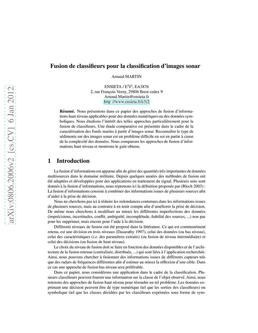 We present in this paper high level information fusion approaches available for numeric and symbolic data. We analyse the interest of such methods particularly for classifier fusion. A comparative study is presented for the seabed characterization form sonar images. Pattern recognition of the kind of sediments on sonar images is a hard problem because of the complexity of the data. We compare high level information fusion approach and show the obtained benefit.