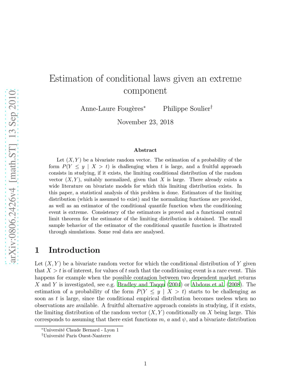 Let be a bivariate random vector. The estimation of a probability of the form $P(Y\leq y \mid X >t) $ is challenging when is large, and a fruitful approach consists in studying, if it exists, the limiting conditional distribution of the random vector , suitably normalized, given that is large. There already exists a wide literature on bivariate models for which this limiting distribution exists. In this paper, a statistical analysis of this problem is done. Estimators of the limiting distribution (which is assumed to exist) and the normalizing functions are provided, as well as an estimator of the conditional quantile function when the conditioning event is extreme. Consistency of the estimators is proved and a functional central limit theorem for the estimator of the limiting distribution is obtained. The small sample behavior of the estimator of the conditional quantile function is illustrated through simulations.