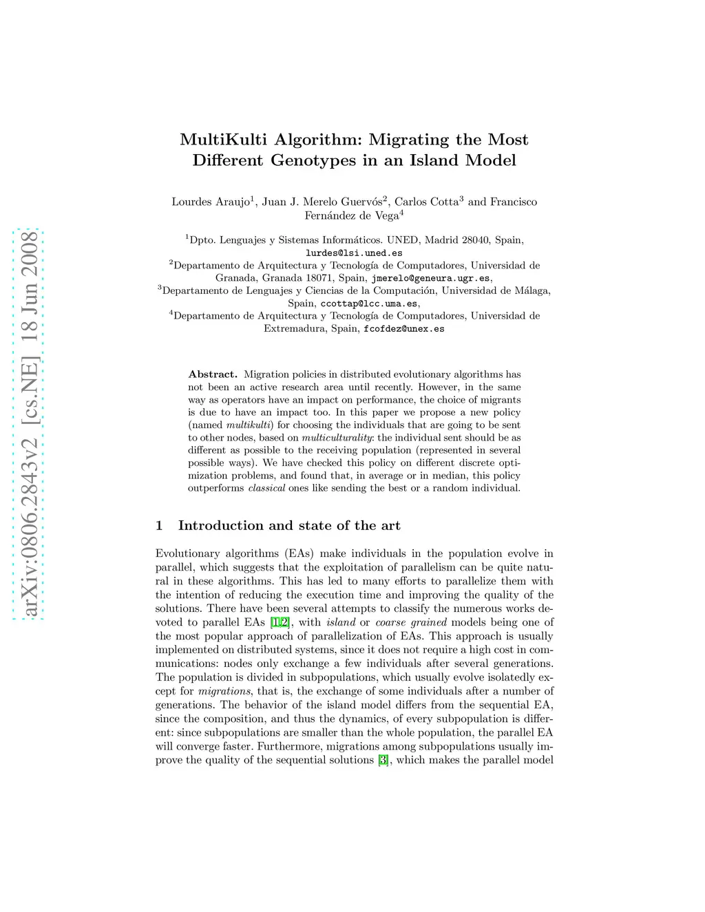 Migration policies in distributed evolutionary algorithms has not been an active research area until recently. However, in the same way as operators have an impact on performance, the choice of migrants is due to have an impact too. In this paper we propose a new policy (named multikulti) for choosing the individuals that are going to be sent to other nodes, based on multiculturality: the individual sent should be as different as possible to the receiving population. We have checked this policy on different discrete optimization problems, and found that, in average or in median, this policy outperforms classical ones like sending the best or a random individual.