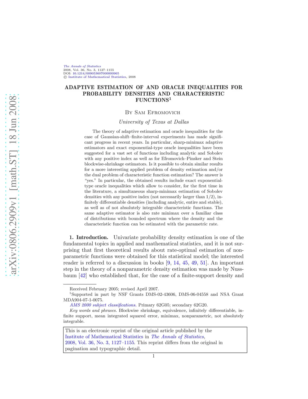 The theory of adaptive estimation and oracle inequalities for the case of Gaussian-shift--finite-interval experiments has made significant progress in recent years. In particular, sharp-minimax adaptive estimators and exact exponential-type oracle inequalities have been suggested for a vast set of functions including analytic and Sobolev with any positive index as well as for Efromovich--Pinsker and Stein blockwise-shrinkage estimators. Is it possible to obtain similar results for a more interesting applied problem of density estimation and/or the dual problem of characteristic function estimation? The answer is ``yes.'' In particular, the obtained results include exact exponential-type oracle inequalities which allow to consider, for the first time in the literature, a simultaneous sharp-minimax estimation of Sobolev densities with any positive index (not necessarily larger than 1/2), infinitely differentiable densities (including analytic, entire and stable), as well as of not absolutely integrable characteristic functions. The same adaptive estimator is also rate minimax over a familiar class of distributions with bounded spectrum where the density and the characteristic function can be estimated with the parametric rate.