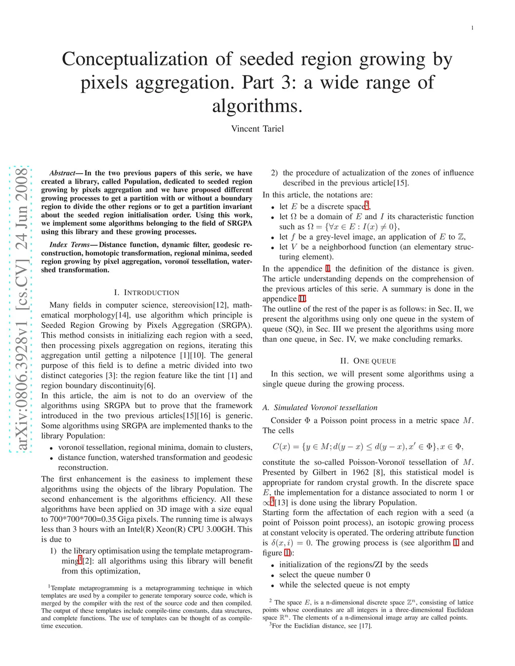 Conceptualization of seeded region growing by pixels aggregation. Part